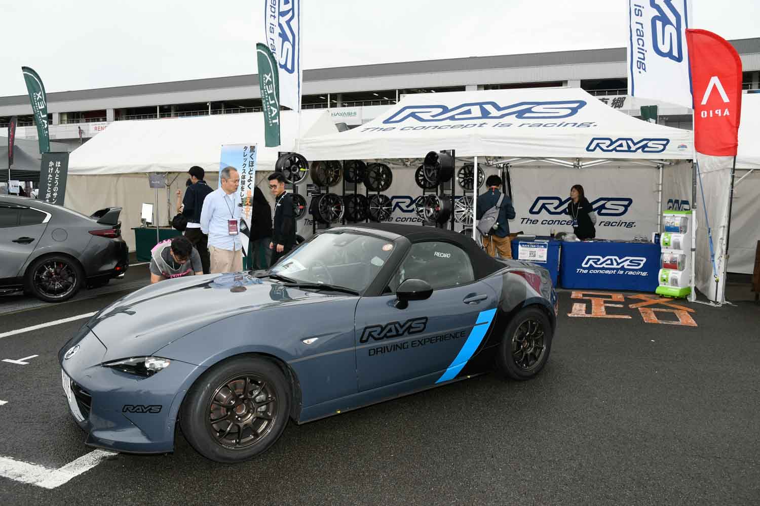 パドックでは大きく3つのグループに分かれてのブース出展が展開された。第1に、全国各地のマツダグループのエリアではスタンプラリーも企画された。それぞれに工夫を凝らした体験やチャレンジを実施し、行列のできるブースも続出した。