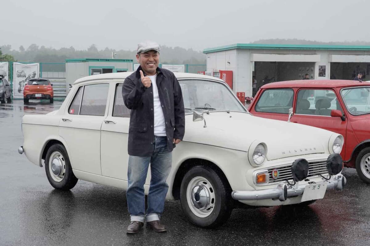 パドックに佇む1台の旧いサルーンカーの「茨5」という一桁のナンバーが、その存在感をより際立たせていた。その上品なサルーンカーとは、1964年式のヒルマン ミンクス シリーズⅤだ。