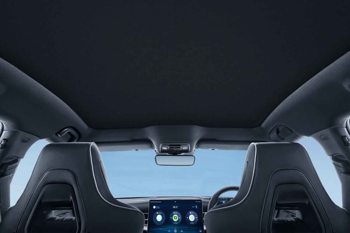 インテリアでは、解放感のあるガラスルーフに電動サンシェードを全車標準装備。運転席にはサングラスケースが新たに追加され、細部の使い勝手にも配慮している。エアコンの冷却性能と静粛性も改善され、空気清浄機能も強化。EVらしい静粛で快適な室内空間をさらに向上した。