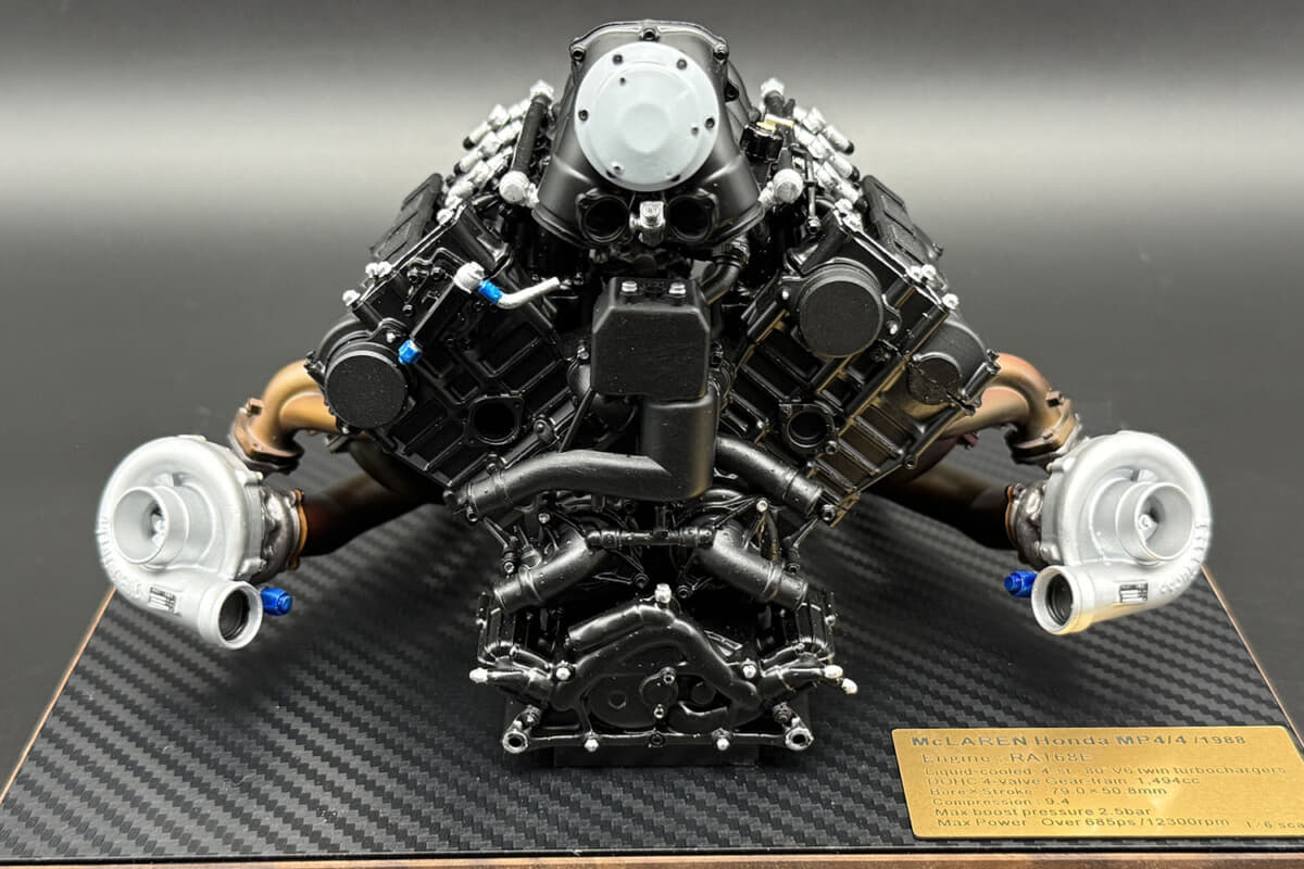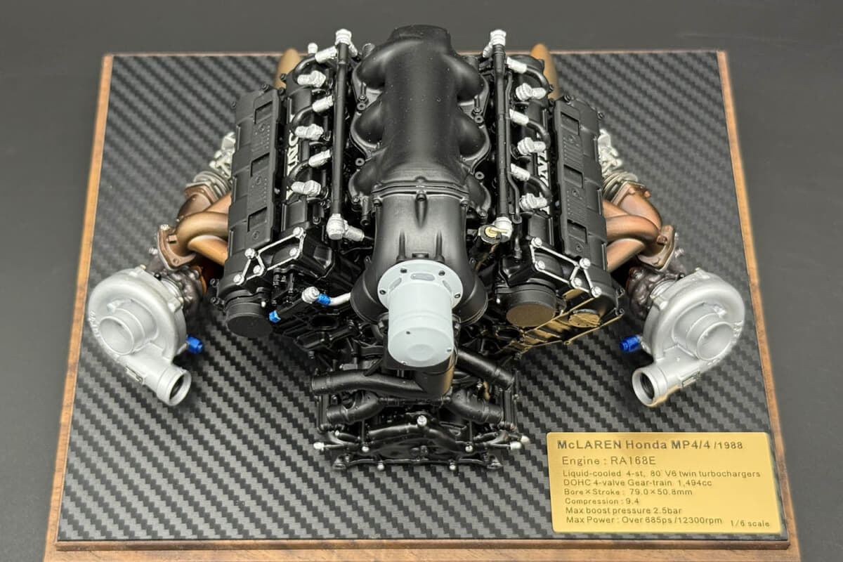 3基目は、16戦15勝という圧巻の勝ち星を挙げ、1988年シーズンを支配したマクラーレンMP4/4のパフォーマンスを支えた最後の1.5L V型6気筒ターボエンジン「RA168E」である。いずれもホンダF1第1期、第2期を象徴する名機たちだ。