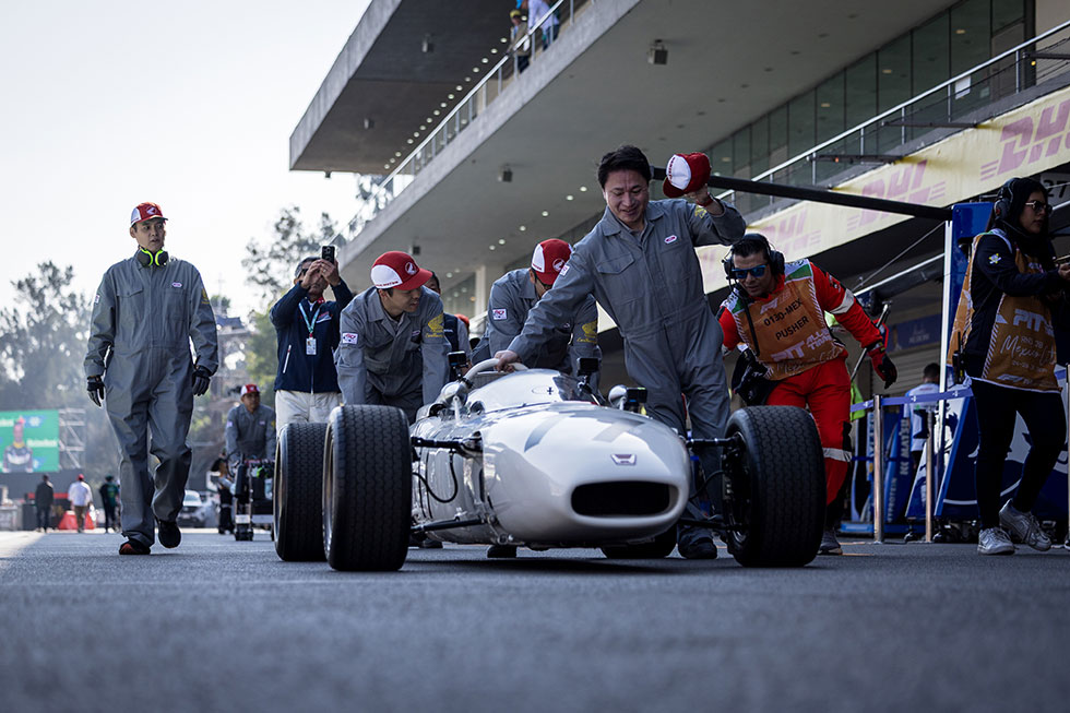 ホンダF1マシン「RA272」が走行したエルマノス・ロドリゲス・サーキットは今から60年前に記念すべきホンダF1初勝利を挙げたサーキットである。このデモランはホンダF1の歴史を象徴する「原点回帰」のプログラムとして実現したものだ。