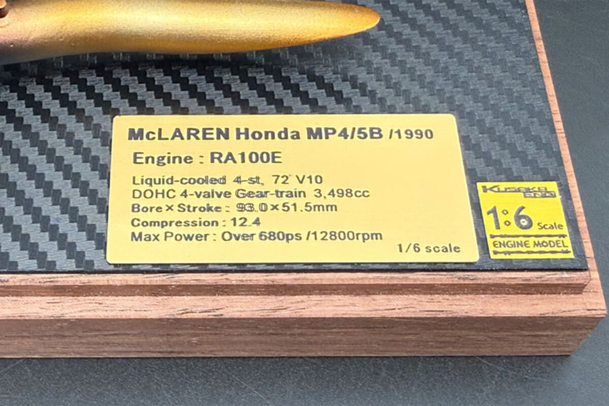 2基目は、1990年にアイルトン・セナが2度目のドライバーズタイトルを獲得したマクラーレンMP4/5Bのパワーユニットである3.5L V型10気筒エンジン「RA100E」である。