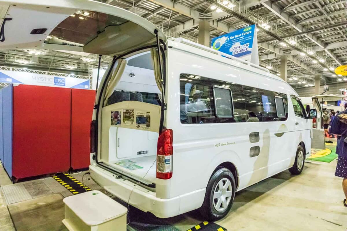 全国からさまざまなキャンピングカーが集結するイベント会場で、ハイエース・ベースのキャンピングカーは根強い人気だ。幅188cm、全長538cmのワイドボディ スーパーロングというもっとも大きなベースモデルは、車内にかなりの広さを確保できる。広いベッドルームを持つモデルから、充実装備のキャンピングカーまで、さまざまなスタイルが群雄割拠する激戦区でもある。