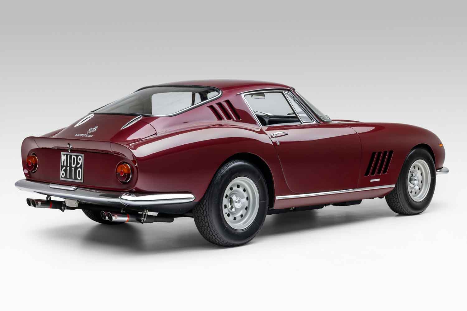 フェラーリの歴史の世界的権威、マルセル・マッシーニ氏の調査によれば、シャシーNo.09931は1967年5月に組み立てが完了。エレガントなカラーコンビである「ロッソ・ルビーノ」塗装にベージュのレザー内装を組み合わせた。シートのインサートは、きわめて希少かつ人気の高いコーデュロイ生地のコンビでオーダーされた。