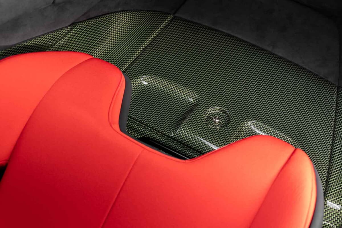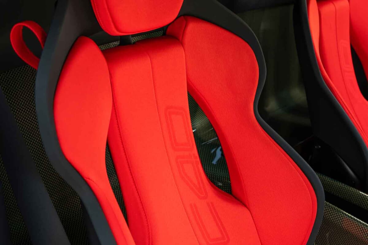 インテリアもF40の遺伝子を強く受け継ぐ。カーボンケブラー素材を新たに開発・再構築し、フットウェル、シート背面、フロアマット、さらにはステアリングホイールやエンジンベイ、ラゲッジルームにも採用。アルミ製の燃料キャップと充電口はブラッシュ仕上げで、細部までクラフトマンシップが宿る。