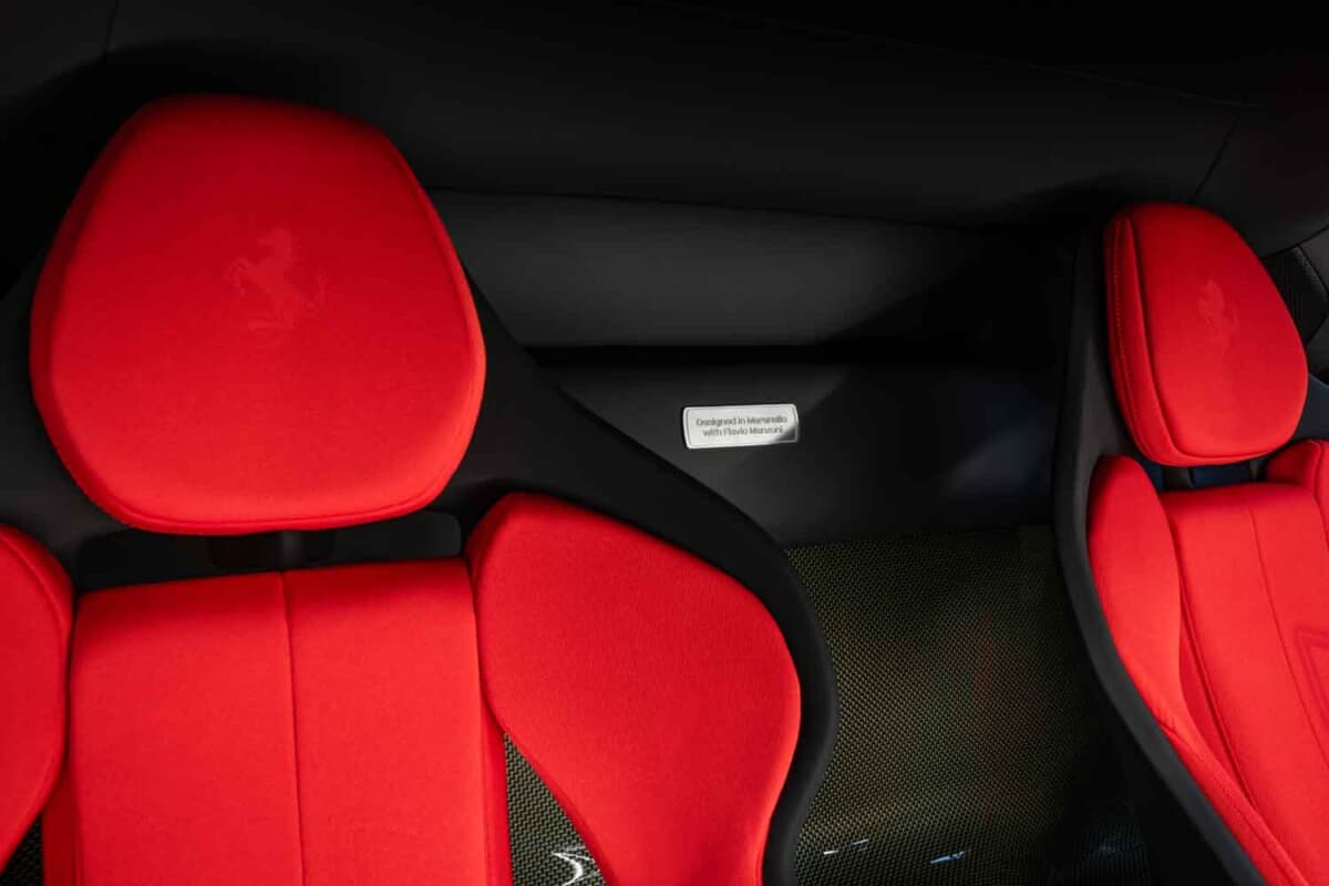 搭載されるパワートレインは3L V6ツインターボ+電動モーターで、総合出力830cv、最大トルク740Nmを発揮し、0-100km/h加速は2.9秒、最高速度は330km/hを超える。8速DCTが組み合わされ、eSSC(電子シャシー制御システム)によって統合制御される。ボディは重量1550kgと軽量で、パワーウェイトレシオ1.87kg/cvを実現。フェラーリらしい俊敏なハンドリングを支える。