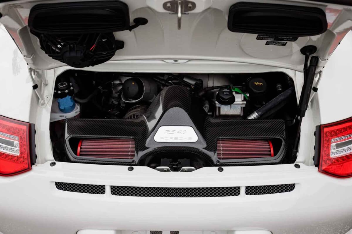その後ポルシェは、2002年に発表された後期型の996型911をベースにGT3を大幅に刷新した。最高出力はさらに381psに向上し、オプションではあるがポルシェセラミックコンポジットブレーキシステムの選択も可能になった。そして翌2003年に登場したのが、さらにサーキット走行へとフォーカスした究極のGT3ともいうべき「GT3 RS」である。RSはレン・シュポルト、すなわち英語ではレーシング・スポーツを意味する、ポルシェ伝統の称号である。リアの3.6LエンジンにはGT3と同様に381psというパワー・スペックが掲げられたが、じつはRS用のエンジンには独自のチューニングが施されていた。