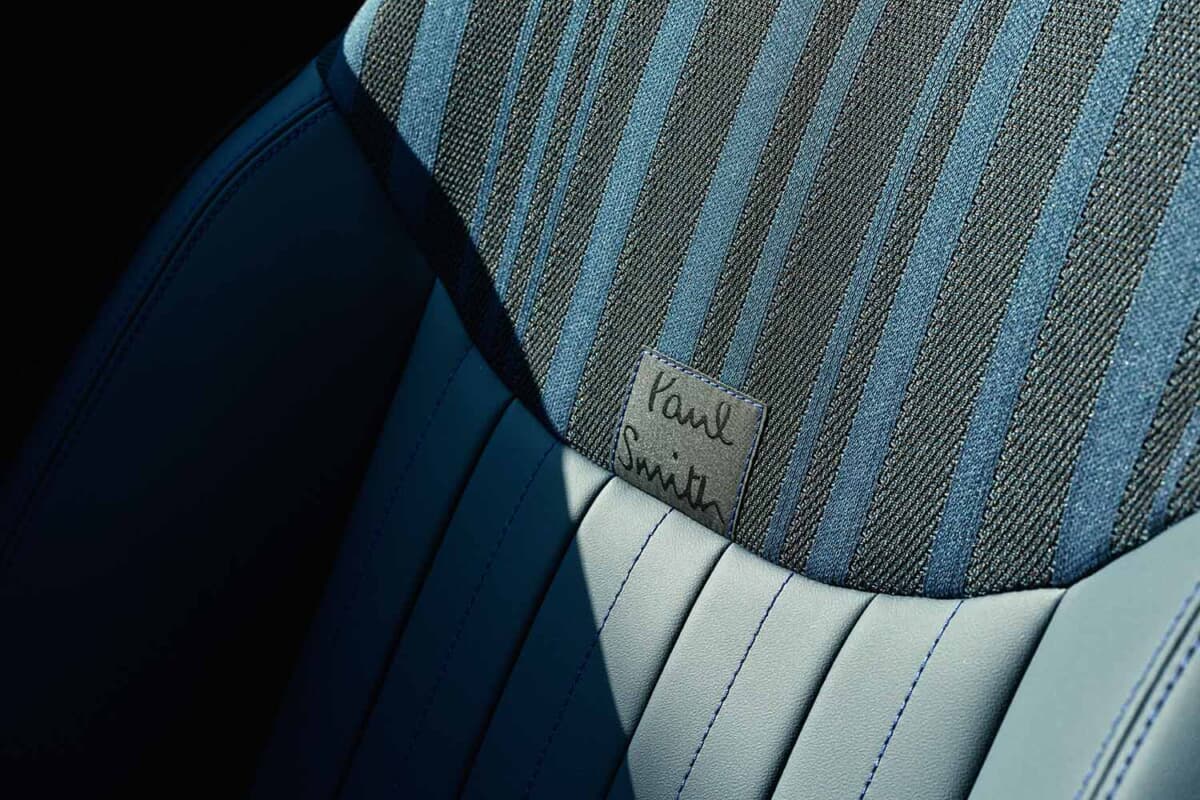 インテリアにも英国デザインの粋が散りばめられている。ダッシュボードとドアパネルにはブラックのニット素材を使用し、特別なストライプパターンのポール・スミス・ファブリックがアクセントを加える。ナイトシェード・ブルーのレザーシートにはショルダーとヘッドレスト部にニット素材を使用し、スポーティさと高級感を両立。ステアリングのテキスタイル・ストラップにはカラフルな飾り縫いが施され、細部までポール・スミスらしさが感じられる。