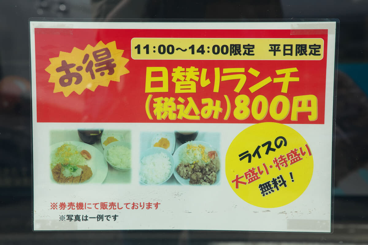 平日のランチタイムはライスの大盛り・特盛りが無料