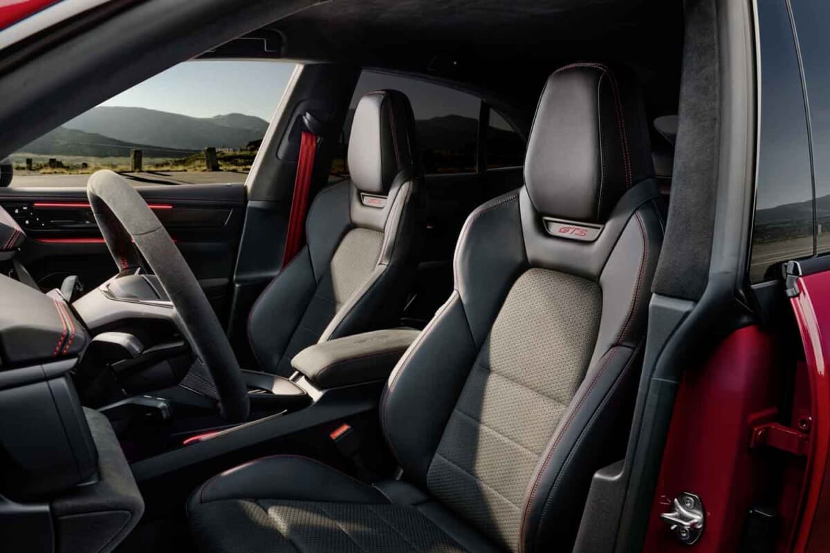 • ポルシェ・マカンGTS:フロントの18ウェイアダプティブスポーツシートは、エンボス加工のレーステックスとブラックのプレーンレザーを採用