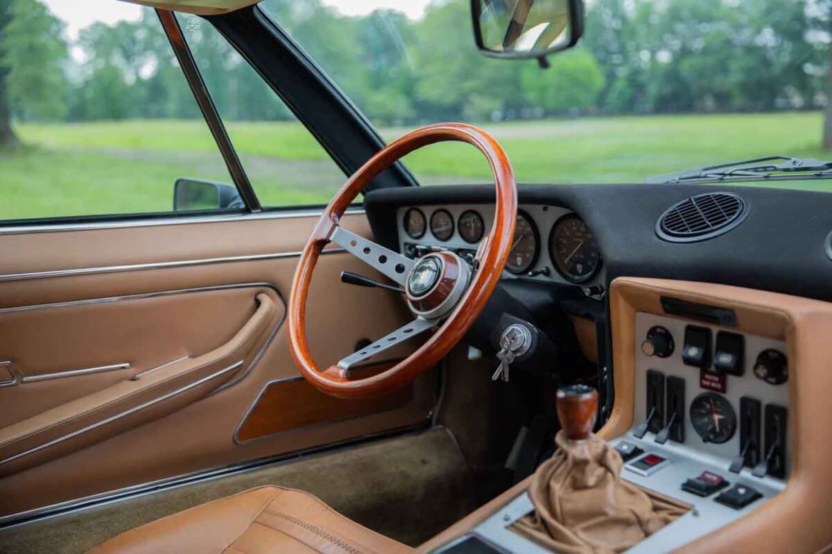 未完に終わったマルツァルは、ミウラ用V12を半分にカットした2L直列6気筒エンジンをリアに横置き搭載していた。一方、エスパーダは320psを発生するV型12気筒3929ccユニットをノーズ先端に搭載している。ランボルギーニの始まりである350GT/400GT以来の後輪駆動を踏襲した。