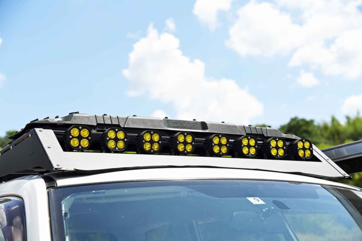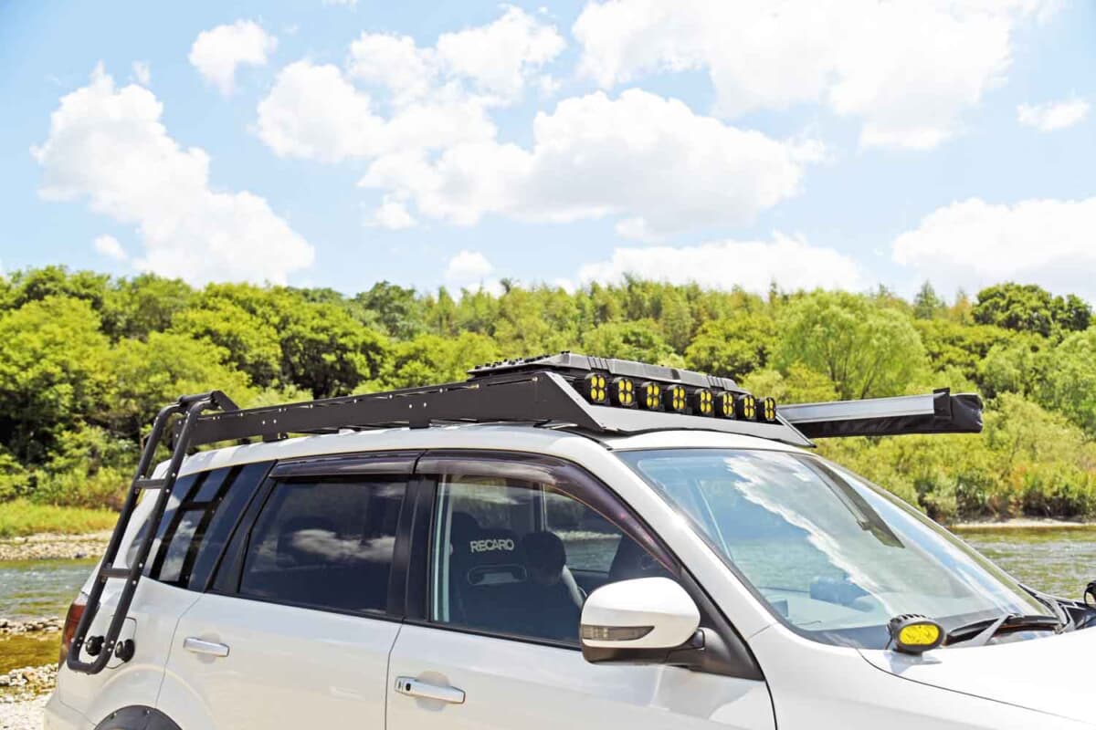 • スバル フォレスター:自作のラック前には、ネットで見つけたLEDライトを8基連ねて装着。ライトの収まりに違和感がない点も、オーナーさんのこだわり