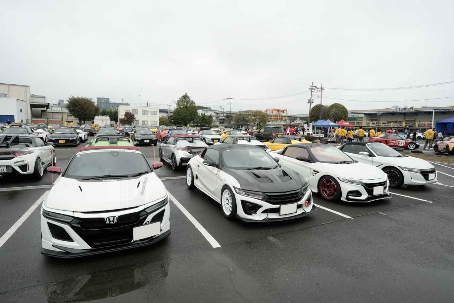 今回は350台の参加申し込みがあった、悪天候ということもあり台数が半数以下になるのではないかという不安もあった。しかし、現地に行ってみれば色とりどりの合計252台(ビートが141台、S660が111台)がずらりと並んぶ姿は壮観であった。