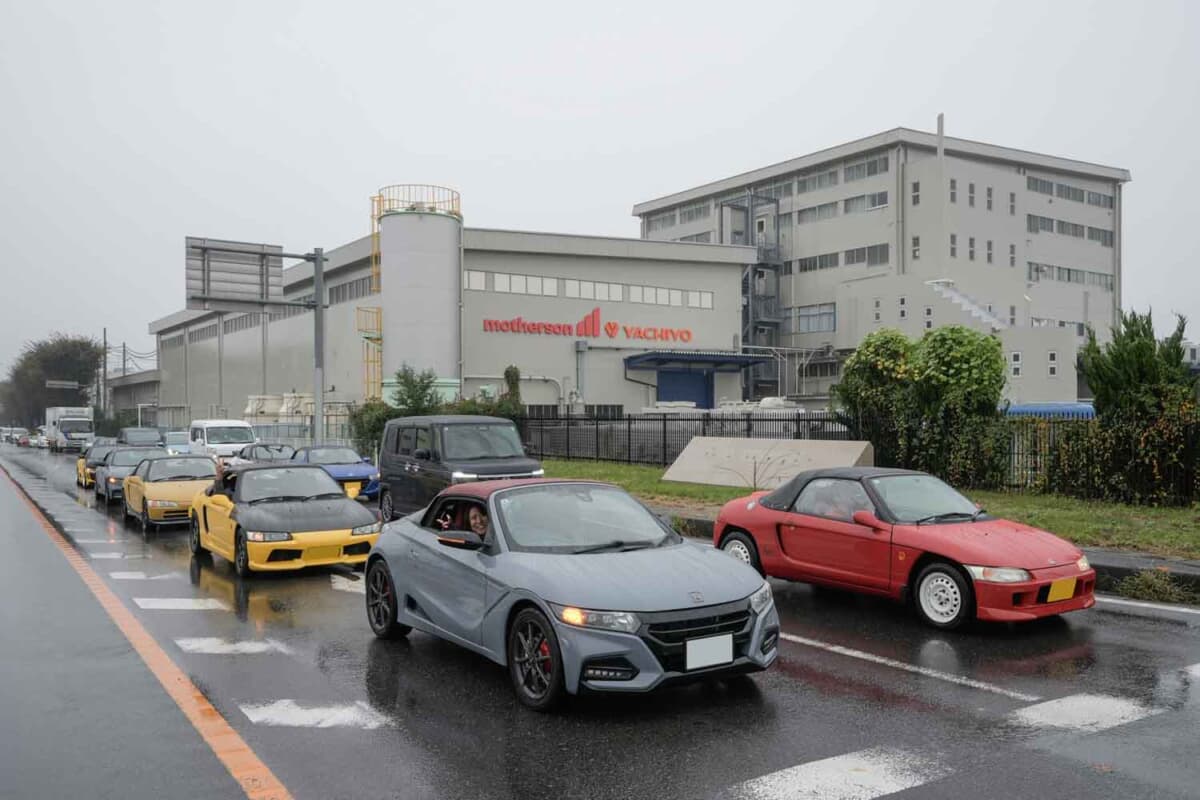 ビートやS660の製造を担った八千代工業株式会社の工場敷地は、社名変更を経た現在も両車のオーナーたちにとって聖地でありつづけている。例年この時期に開催される本イベントは、日本各地からオーナーが集まる「聖地巡礼」の場として定着している。企業の敷地内を会場とするファンミーティングは珍しく、また事前申し込みによりビートとS660の参加台数が均等になるように調整をしている。