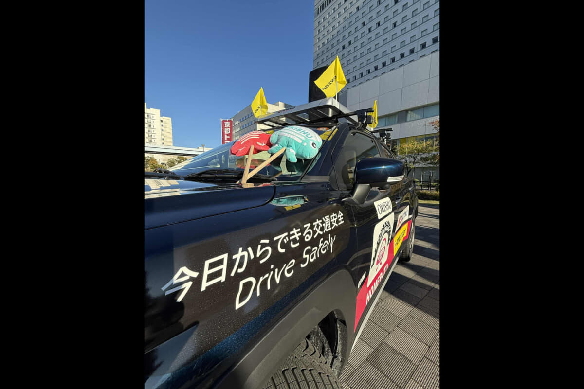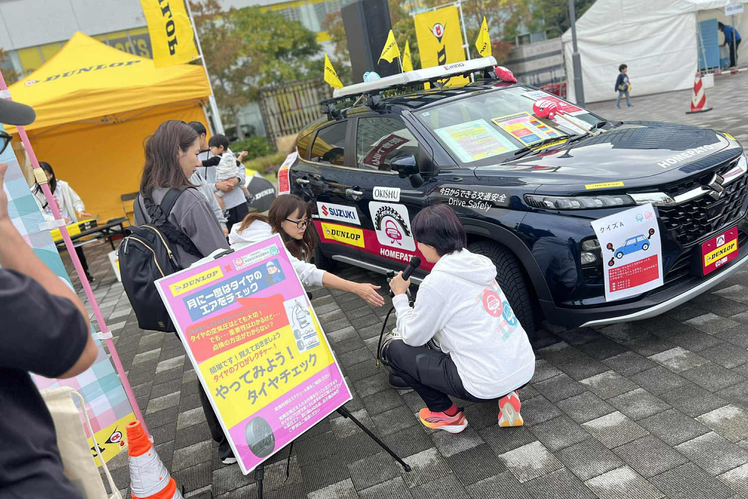 スズキ「フロンクス」の新しいOKISHU号でのクイズ、ダンロップ・シンクロウェザータイヤの空気圧チェック、京都トヨタの新開さんや立命館大学、アイシン、GRガレージ京都伏見からの豪華プレゼント、そしてダンロップさんのサポートもいただきましたの。