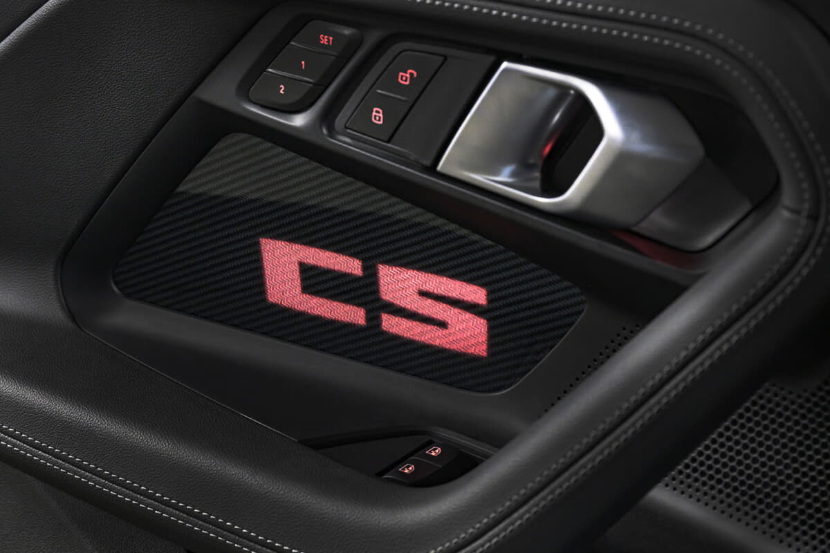 インテリアもレーシングスピリットに満ちた仕上がり。センターマーク付きのアルカンターラ巻きMステアリング、Mカーボンファイバートリム、CFRP製センターコンソール、そしてCSロゴが点灯するイルミネーション。さらに、前席には軽量Mカーボンバケットシートを採用し、後席には大人2名が十分座れるスペースを確保。日常使用にも配慮されている点が特徴だ。