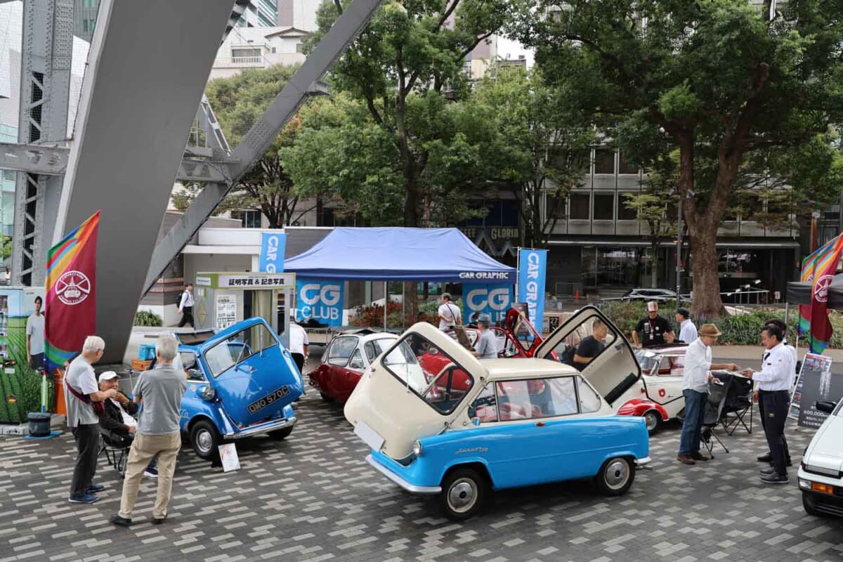 また、公園内のメディア広場に設置されたステージでは、日本モータースポーツの80年と題されたステージが展開された。日本人初のF1ドライバーである鮒子田寛さん、RACラリーで日本人初のクラス優勝を獲得した勝田照夫さん、その息子で全日本チャンピオンを9回獲得した勝田範彦さんが登壇した。