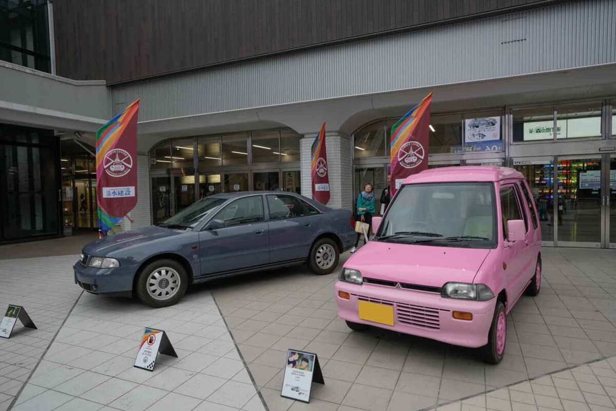 メイン会場となる中部電力MIRAI TOWERの下では、トリノ名古屋姉妹友好都市提携20年を記念し、トリノデザインの日本のクルマが展示された。