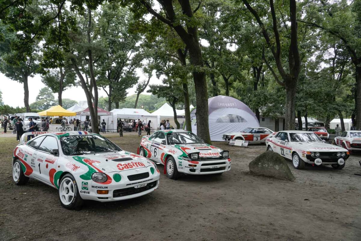 公園内の木立の中に佇む往年のマシンが醸し出す雰囲気は、まるでラリーフィールドにいるかのような素晴らしい演出であり、ラリー愛好家は大満足だっただろう。