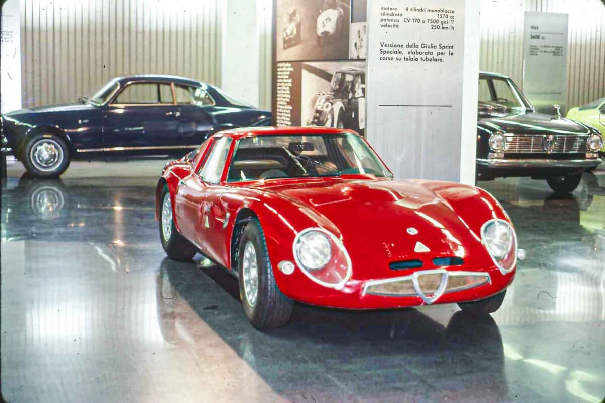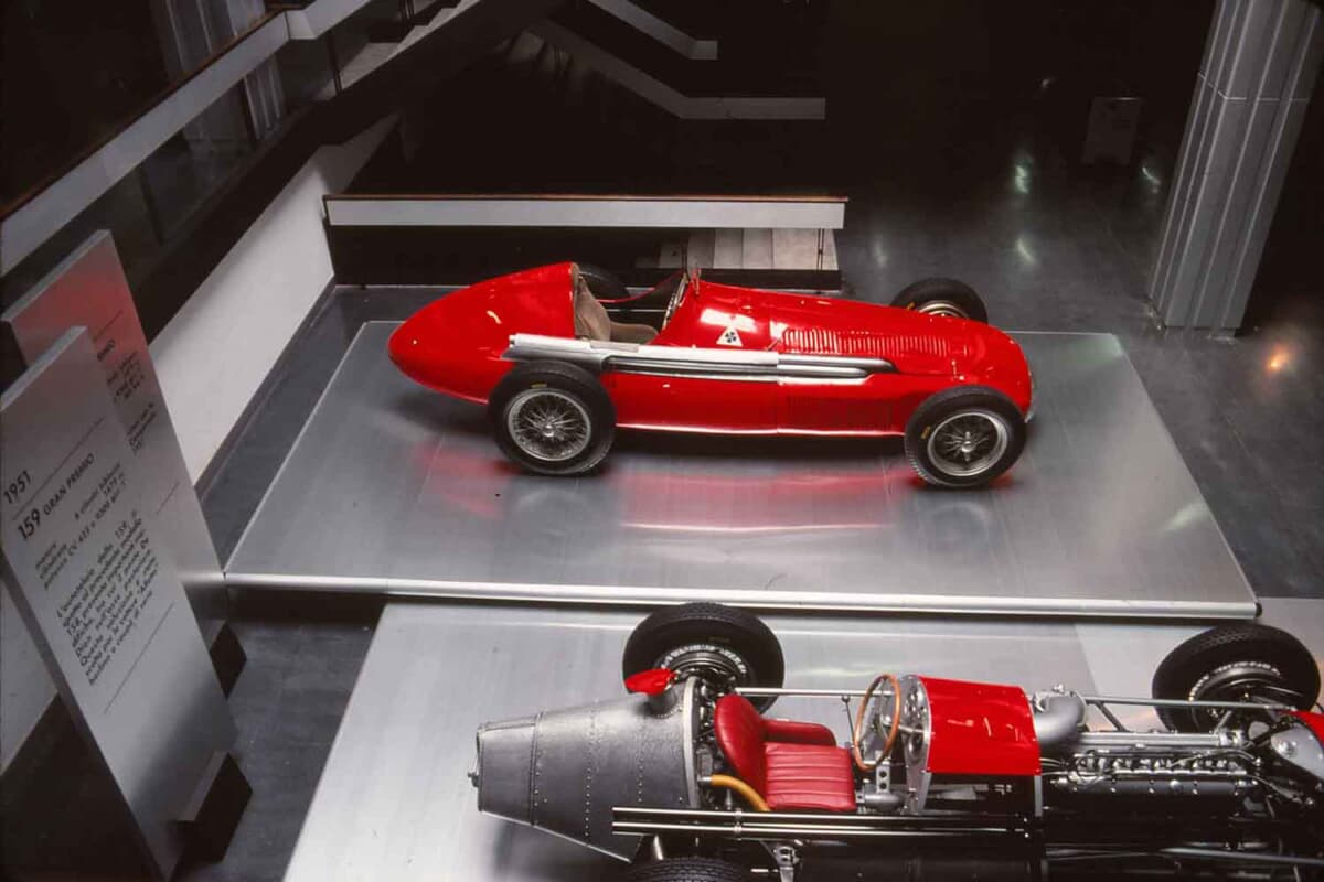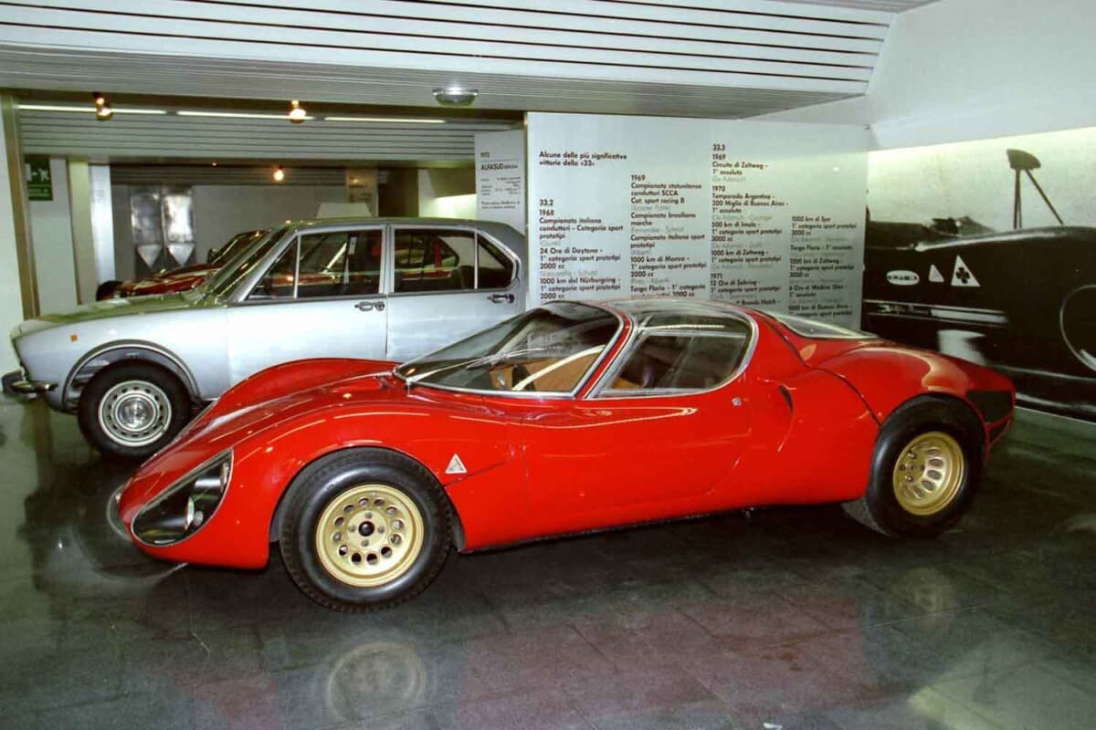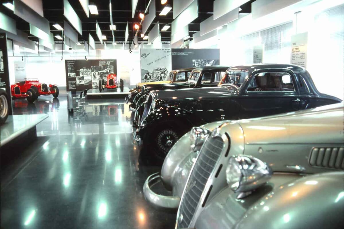 筆者は、この博物館を都合3回訪れているが、その都度展示物は入れ替わっている。玄関を入ったすぐの場所には、時代を反映して最新モデルが展示されていた。最初に訪れた1979年は、戦後のアルファとしては初のV6エンジンを搭載したアルファ6(セイ)が展示されていた。