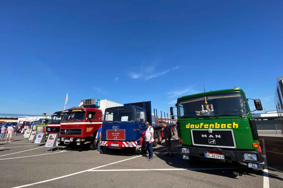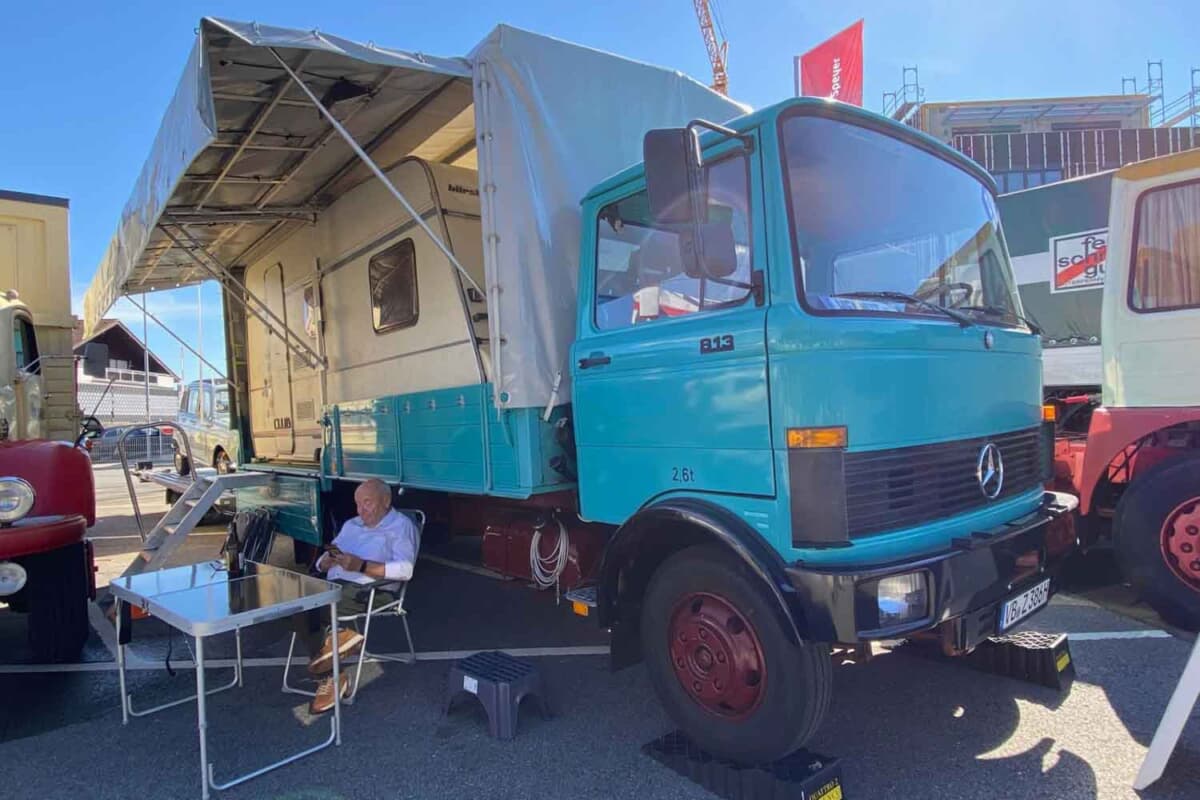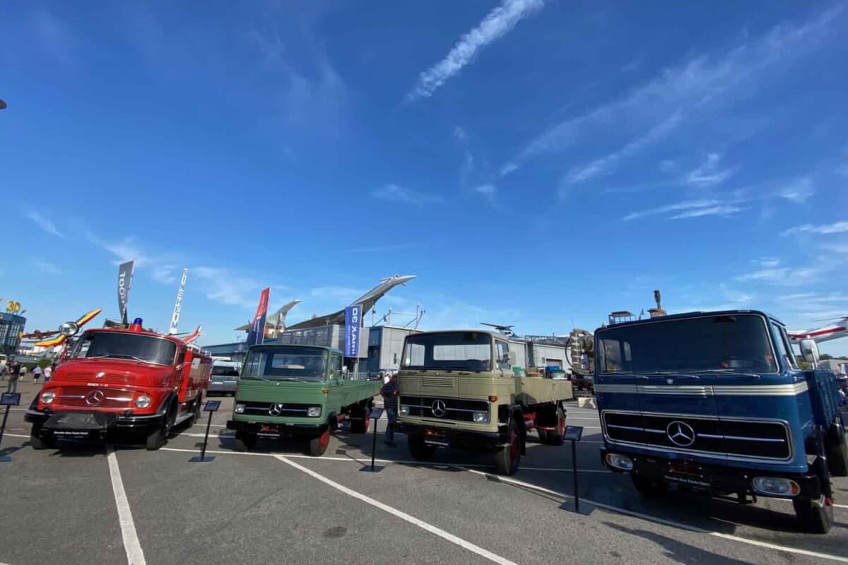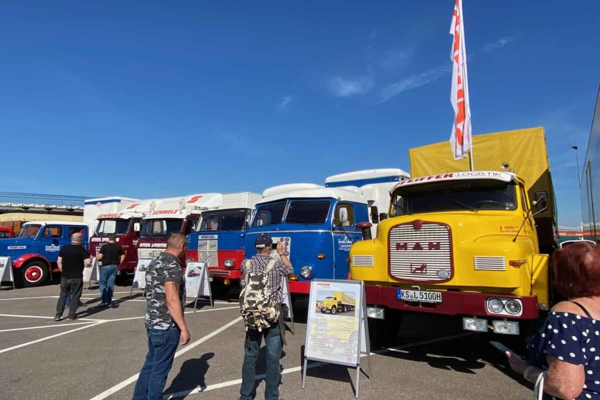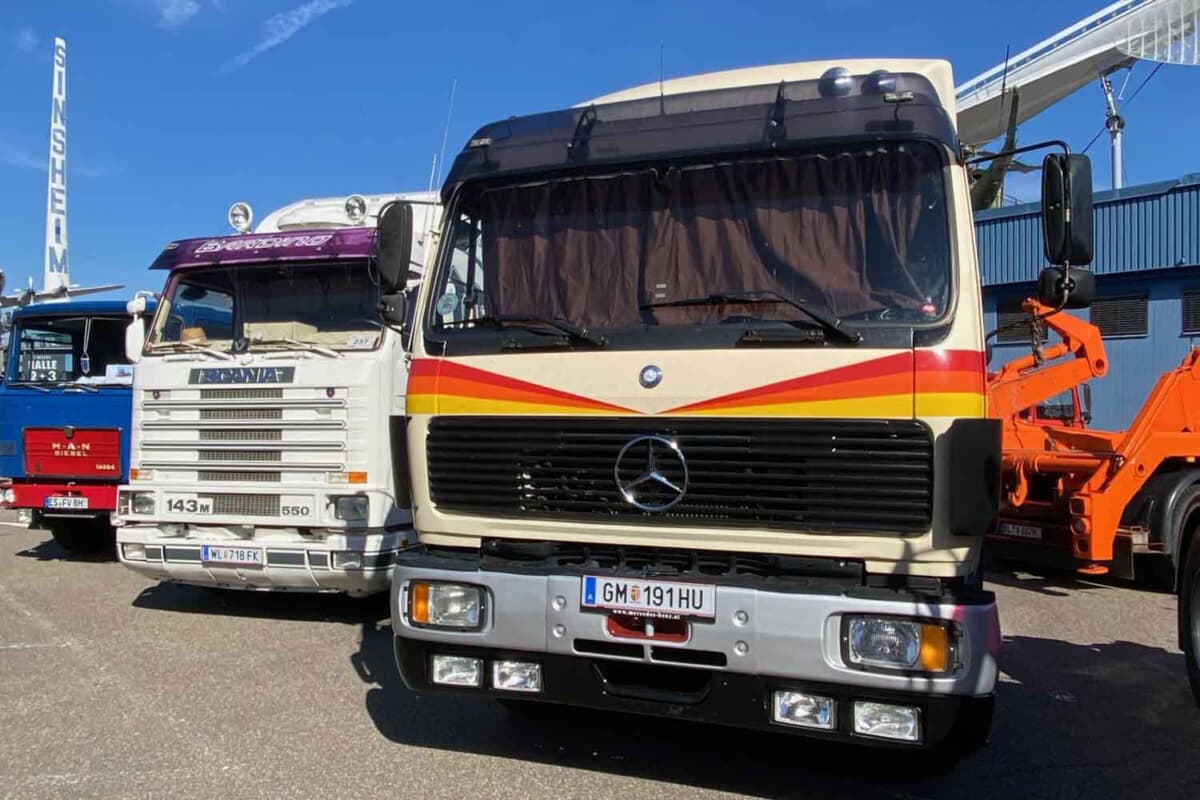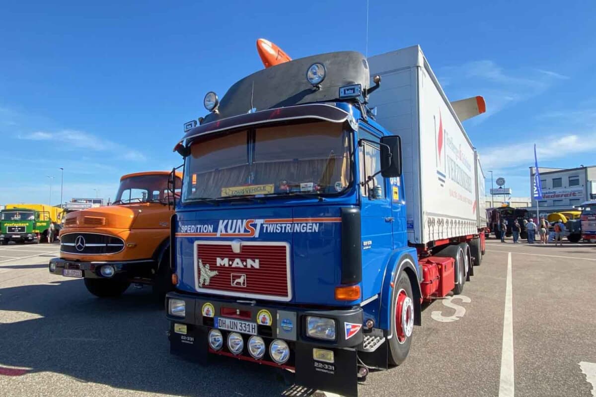 アメ車の展示ホールもありますが、今回はパスしてレトロなトラックを見学に向かいました。ドイツメーカーのメルセデスやMANを中心に、スカーニアやルノーなど、ドイツ以外のメーカーのトラックも並んでいます。これら大型車をコレクションしている人たちは大型倉庫のようなところを所有していたり、レンタルしているのでしょうか。どの車両も非常に美しく、コンディションが良さそうです。どのようにして保管しているのかとても気になりますね。