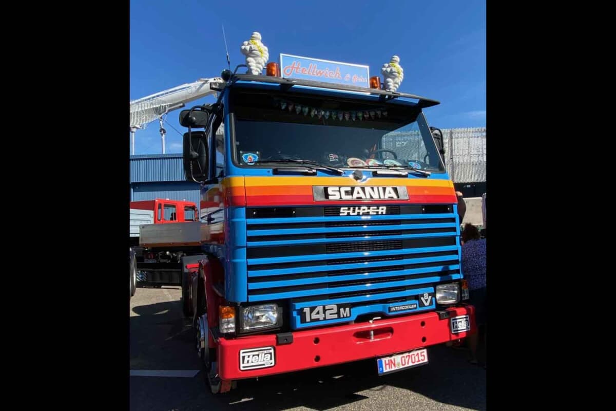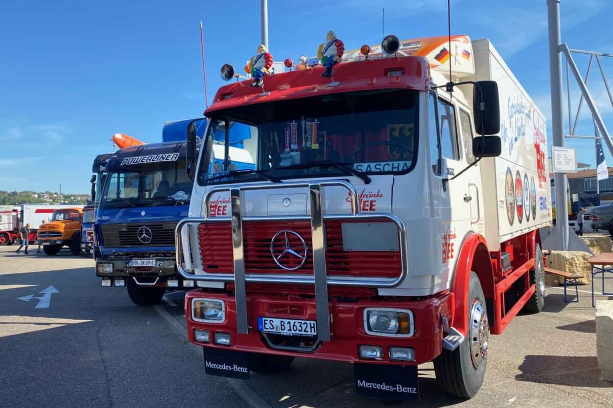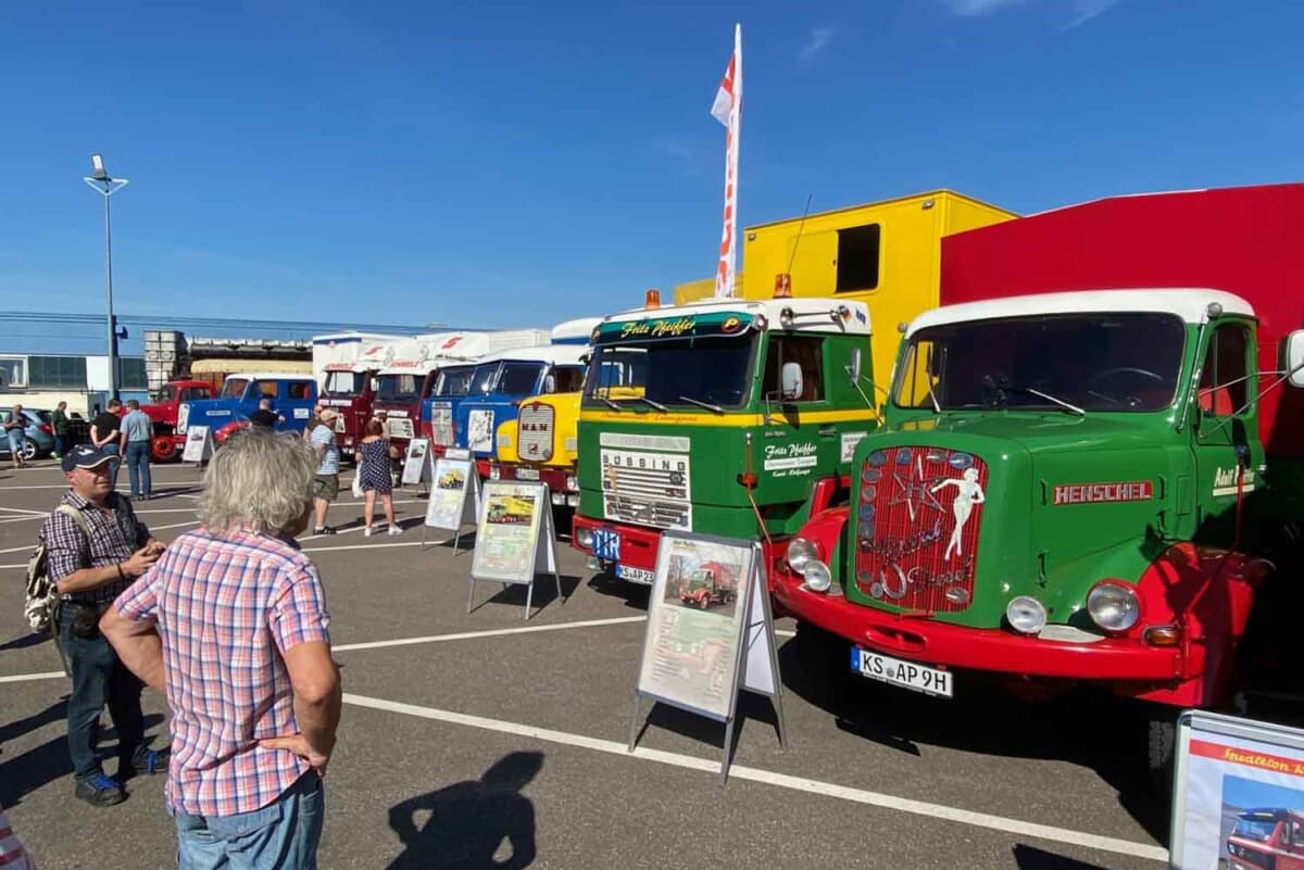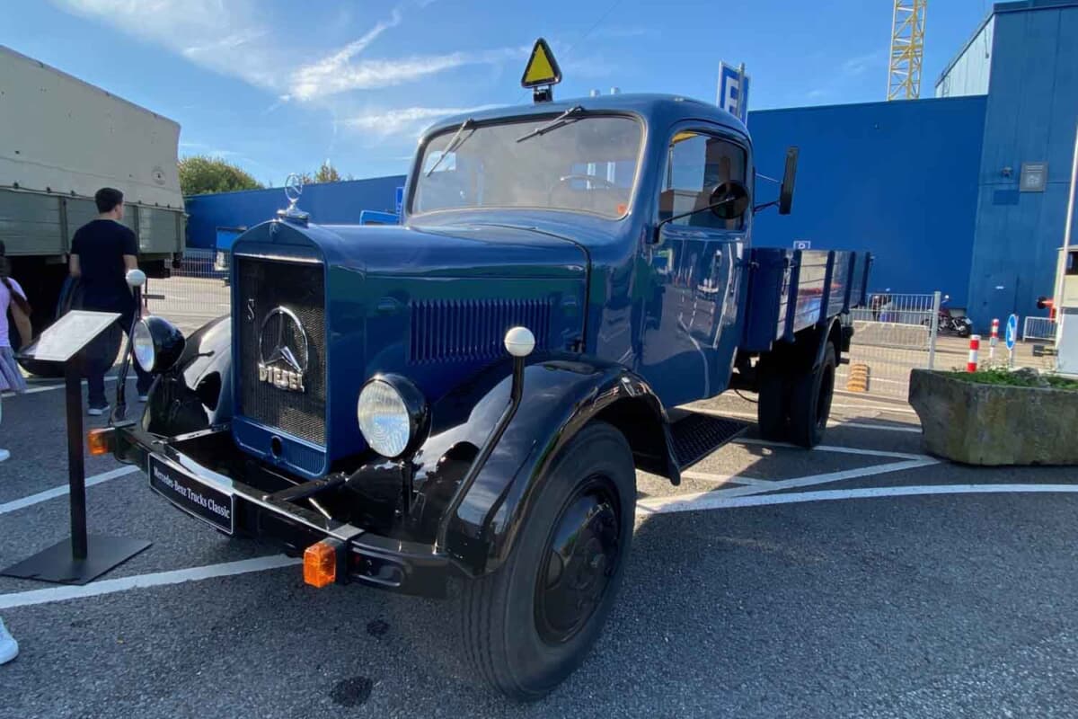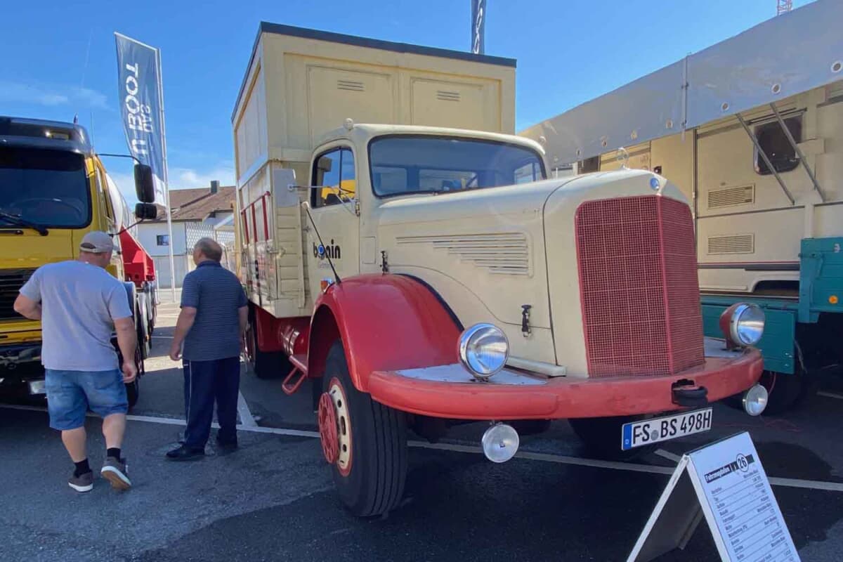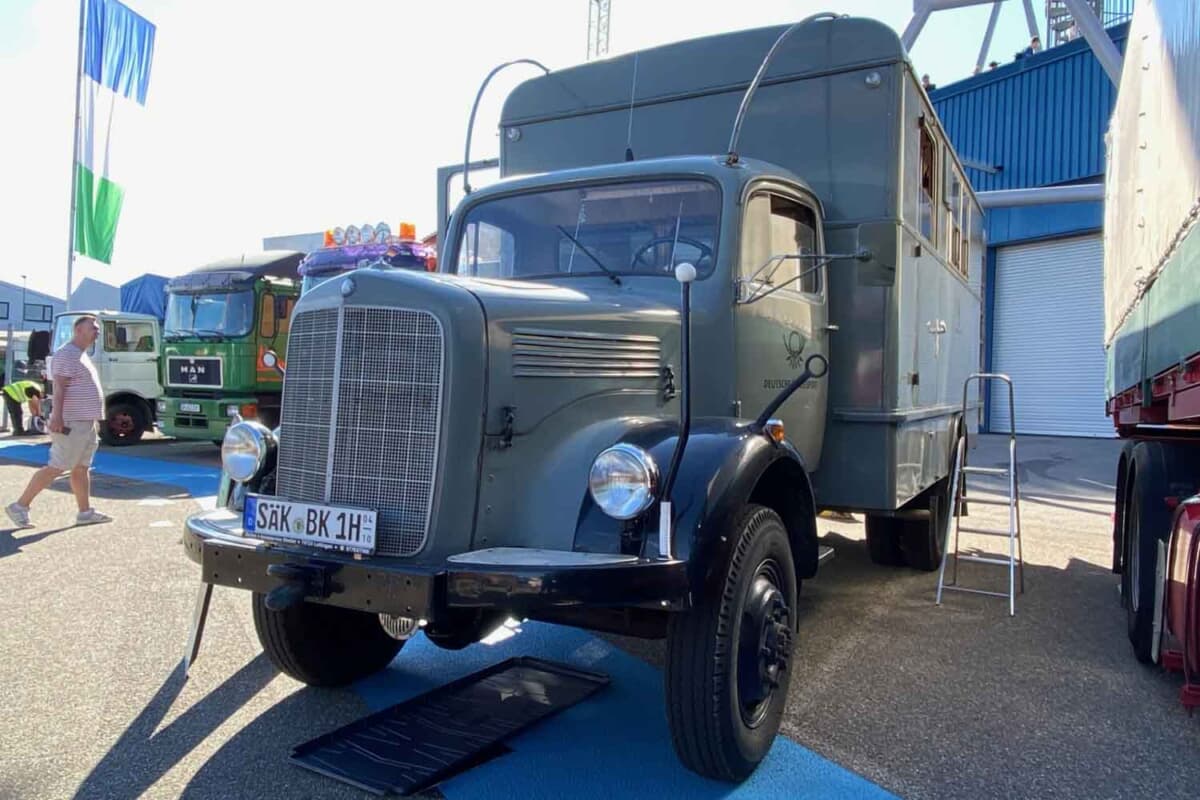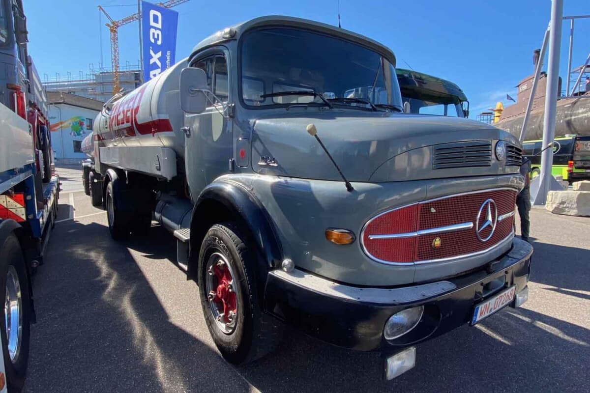 アメ車の展示ホールもありますが、今回はパスしてレトロなトラックを見学に向かいました。ドイツメーカーのメルセデスやMANを中心に、スカーニアやルノーなど、ドイツ以外のメーカーのトラックも並んでいます。これら大型車をコレクションしている人たちは大型倉庫のようなところを所有していたり、レンタルしているのでしょうか。どの車両も非常に美しく、コンディションが良さそうです。どのようにして保管しているのかとても気になりますね。