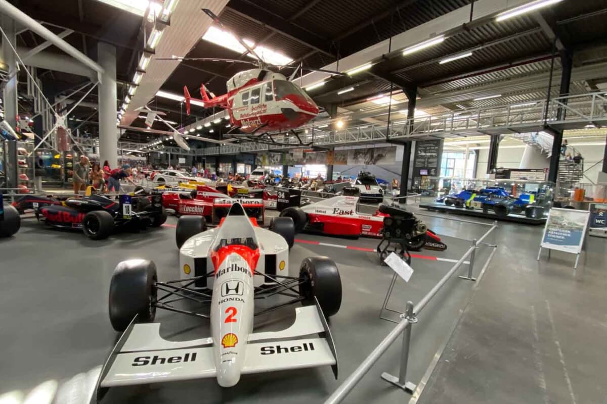 特別展から一般展示フロアへ。所狭しと並ぶさまざまな車両には圧巻されます。本当にじっくり見学するとなると、相当な時間がかかるので歩きやすい靴は必須です。蒸気機関車にヘリコプター、航空機に歴史的な自動車、F1マシン…それらが一堂に広大なフロアに展示されています。