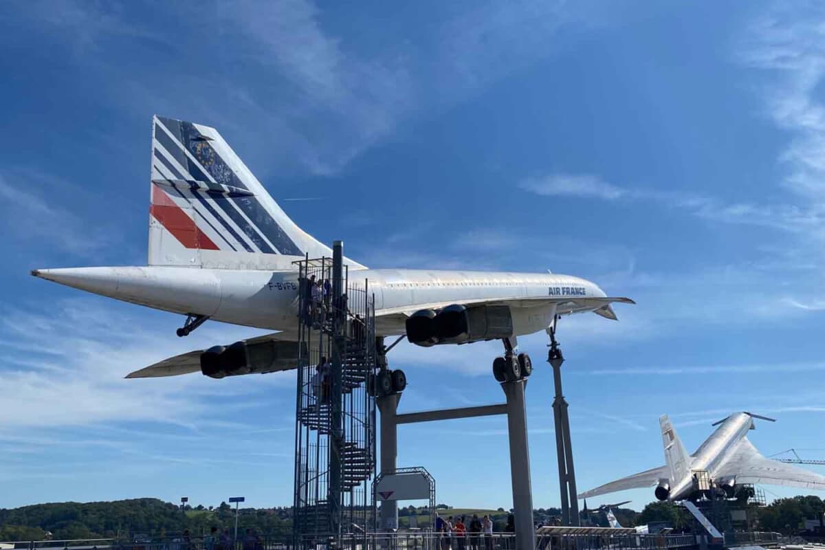 その展示フロアから階段を上がると、屋上に抜けてコンコルドなど数基の飛行機を間近に見学できるほか、機内に入ることもできます。一部の航空機にはミュージアムの出入り口に繋がっている滑り台が設置されていて、飛行機の中から滑り降りることができるのでとても楽しそうなのですが、さすがに妙齢な日本人ひとりではその勇気もなく階段で降りました(笑)。
