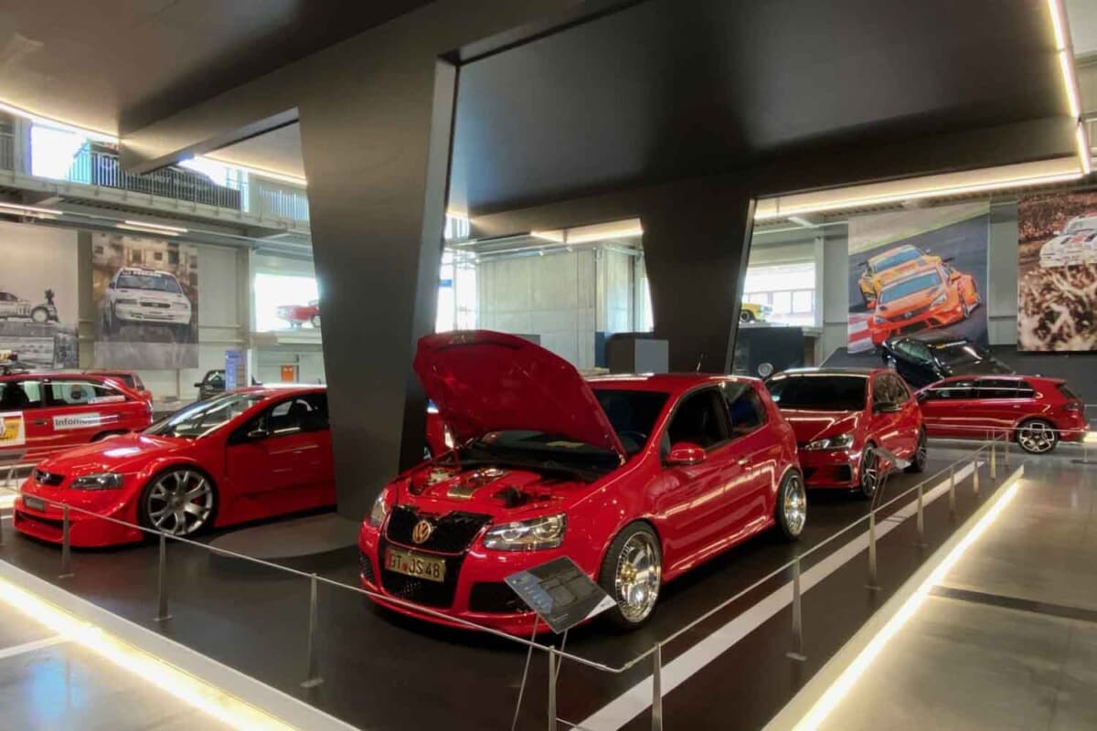 敷地内はいくつかの建物に分かれているのですが、まずはチューニングカーの特別展のホールへ。日本もそうですが、ドイツでもとくに1970年~1990年代は、若者達の間でチューニングが流行し、愛車の個性を主張する時代だったようです。とくにドイツで人気だったチューニングのベース車両は、オペルやフォルクスワーゲン・ゴルフです。