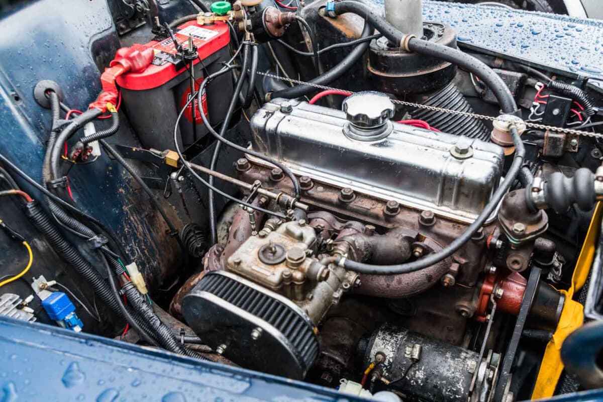 エンジンは1.6Lの直列4気筒OHVで、電装はオリジナルの6Vをキープしているが、キャブレターはWEBERのツインチョークキャブレターに交換している。シンプルな機構ゆえに、これまでトラブルは何度も経験しているが、その都度修理することで乗り越えてきたそうだ。
