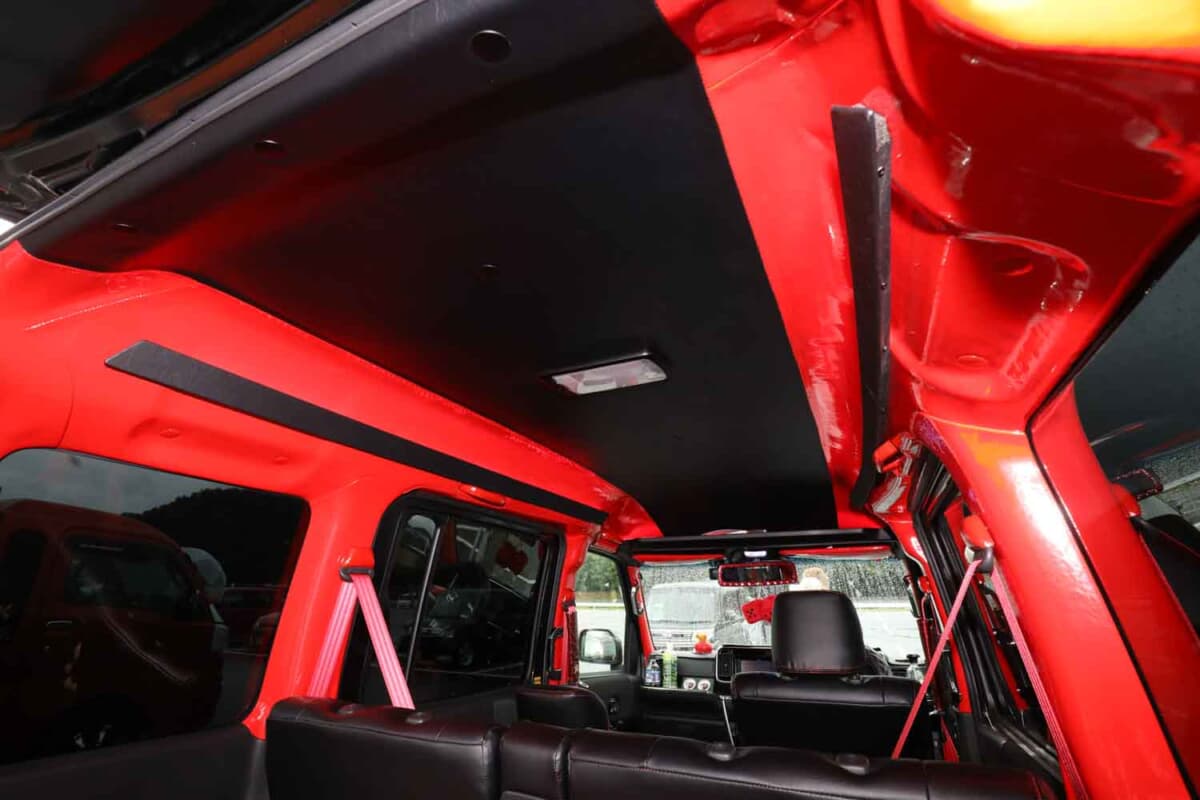 • ダイハツ アトレーワゴン:各パネル類も赤と黒にきっちり塗り分け、インテリアを華やかに演出する