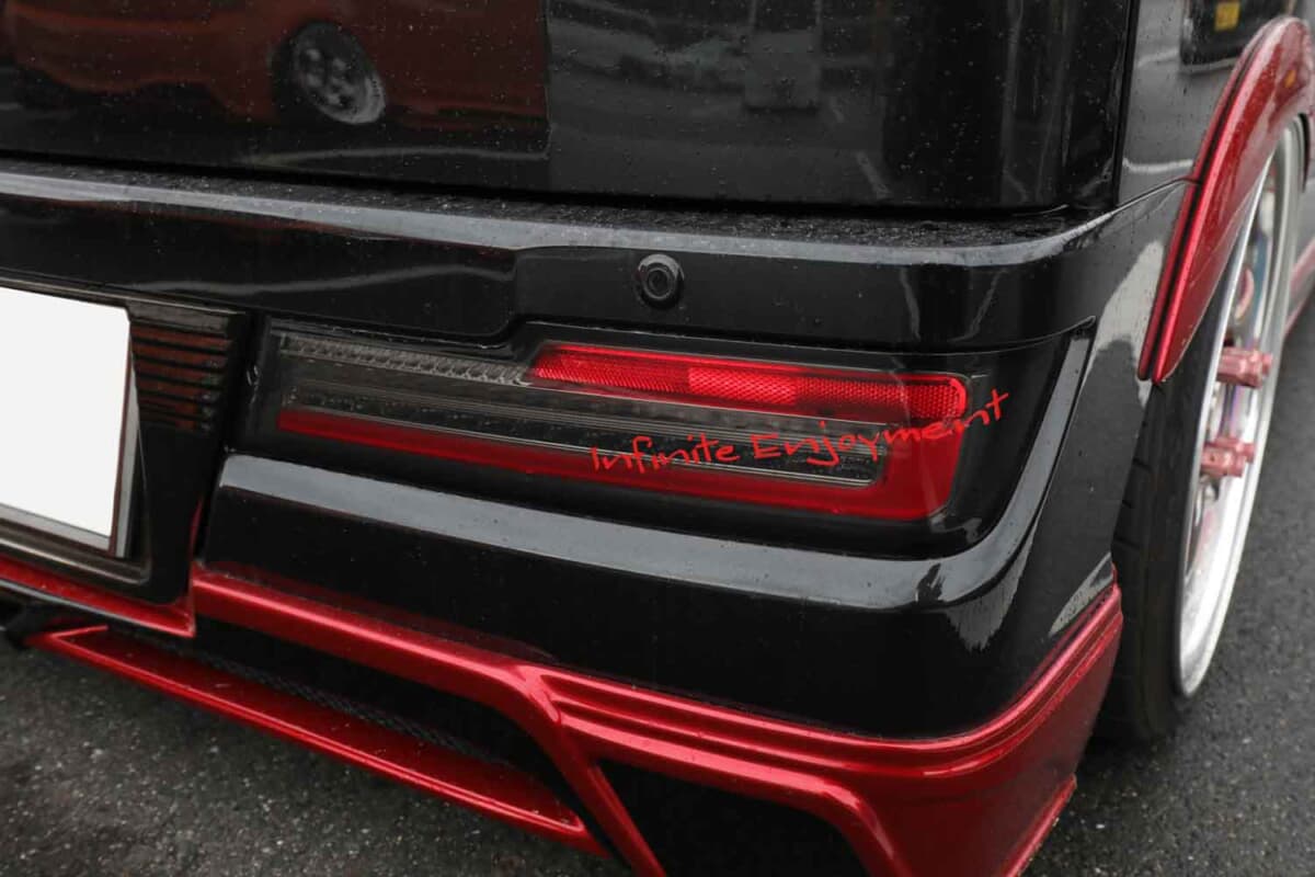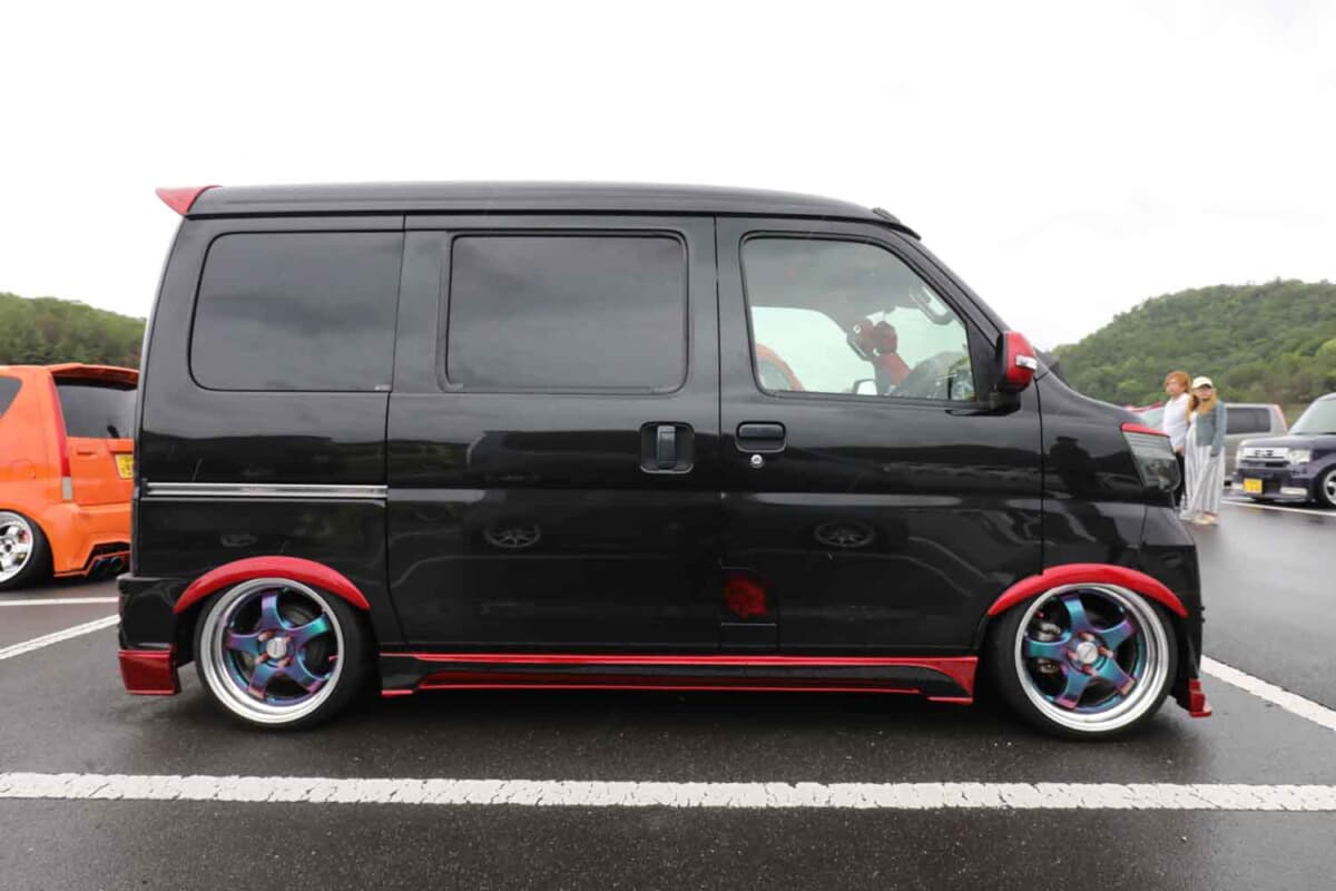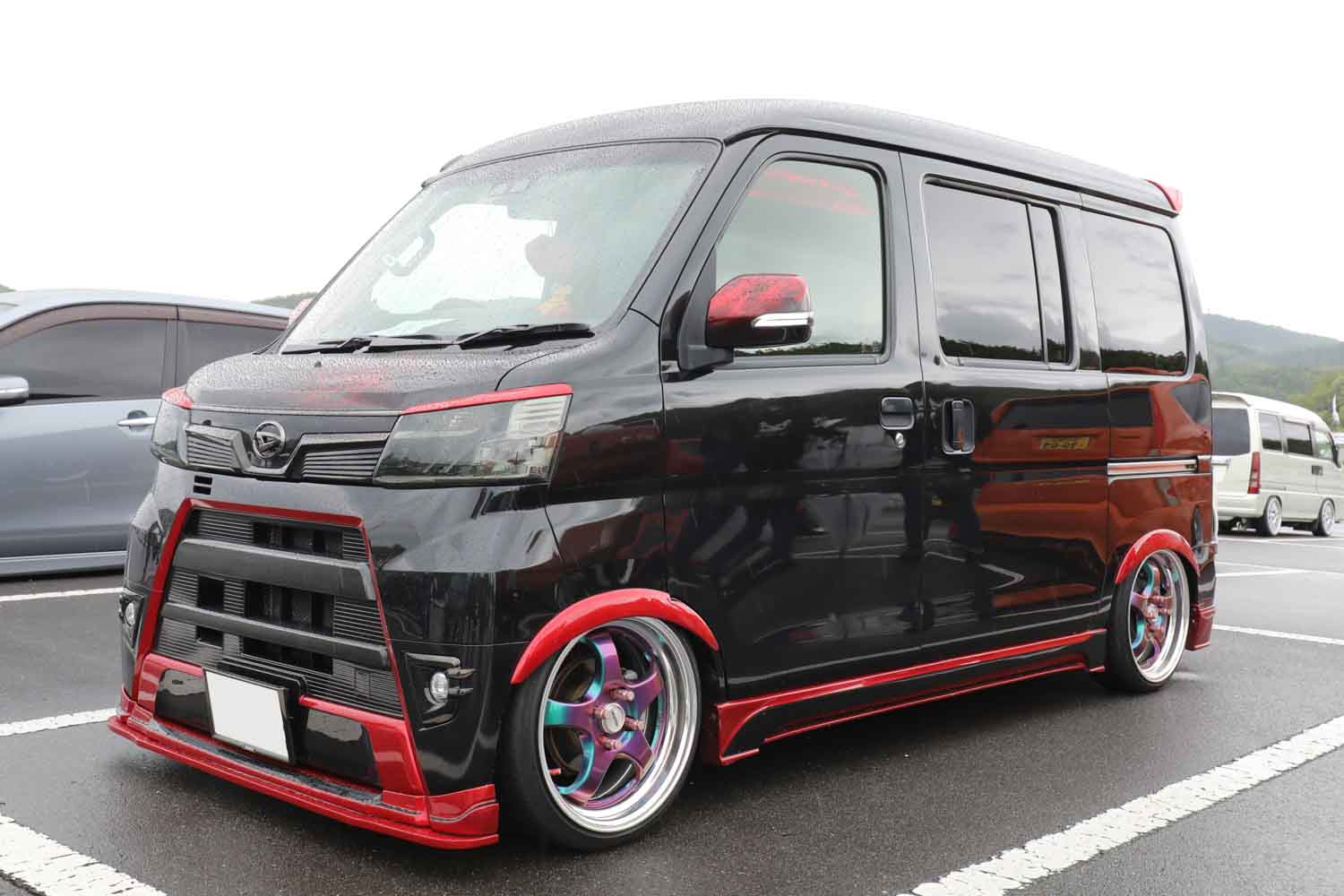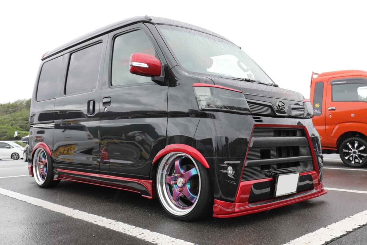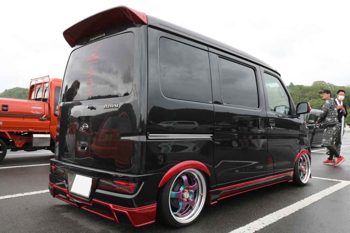 彼女の愛車はダイハツ「アトレーワゴン」!黒×赤のコントラストが映えるカスタマイズ軽バンの完成度がすごい