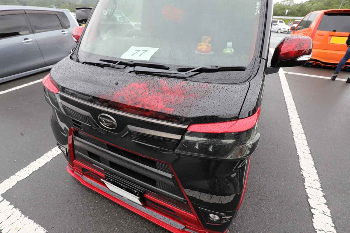 • ダイハツ アトレーワゴン:ボンネットにはエアブラシで赤いバラの花束がさりげなくアレンジされている