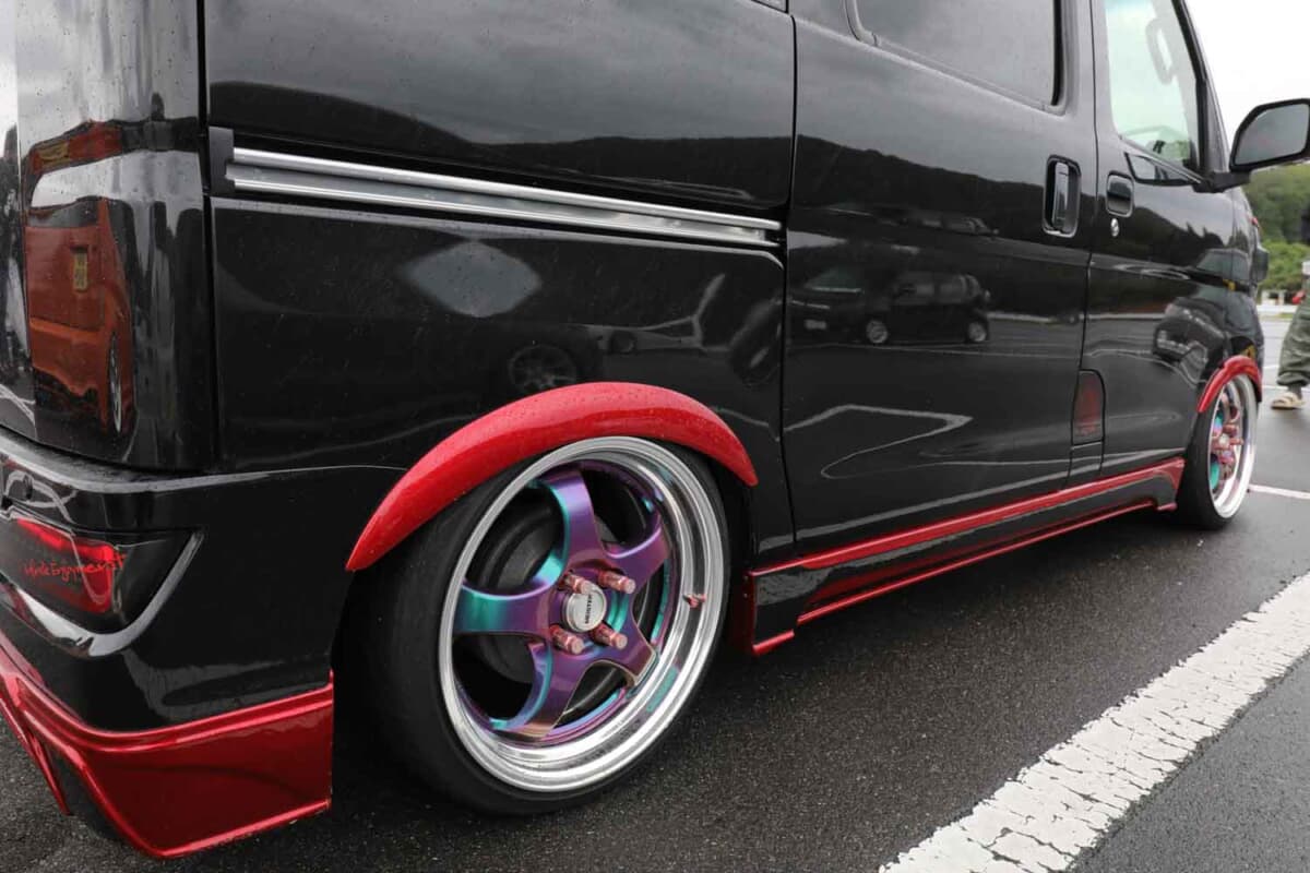 • ダイハツ アトレーワゴン:翔プロデュース製のエアロパーツは装着部分のみが真っ赤にカスタムペイントされている