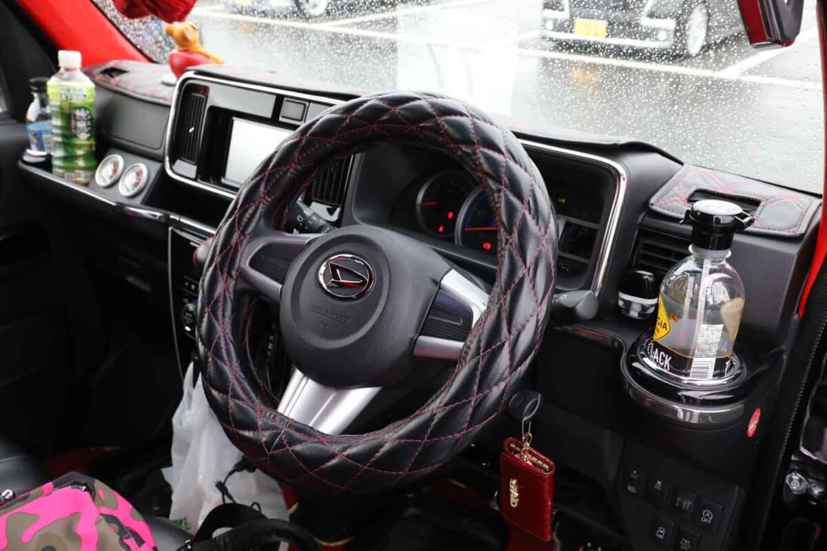 • ダイハツ アトレーワゴン:内装は貴美子さんの好きな赤を基調に黒とのツートンカラーで統一されている