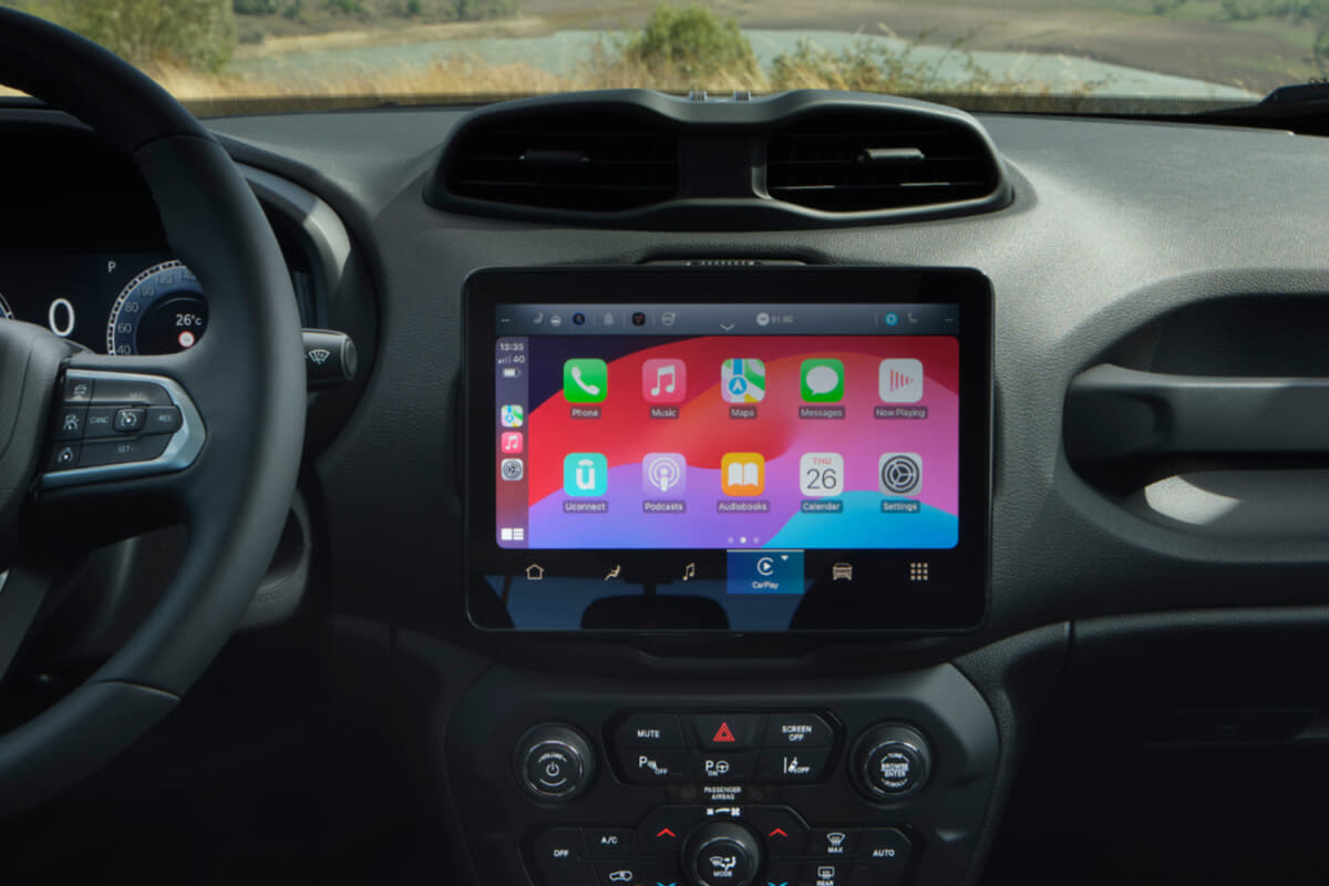 また音声認識システムやナビウゲーション、エアコンなどさまざまな機能を直感的に操作できるUconnect®️を中心に、アドベンチャーを便利で楽しく進化させる先進テクノロジーも充実した10.1インチオーディオナビゲーションシステムを搭載。