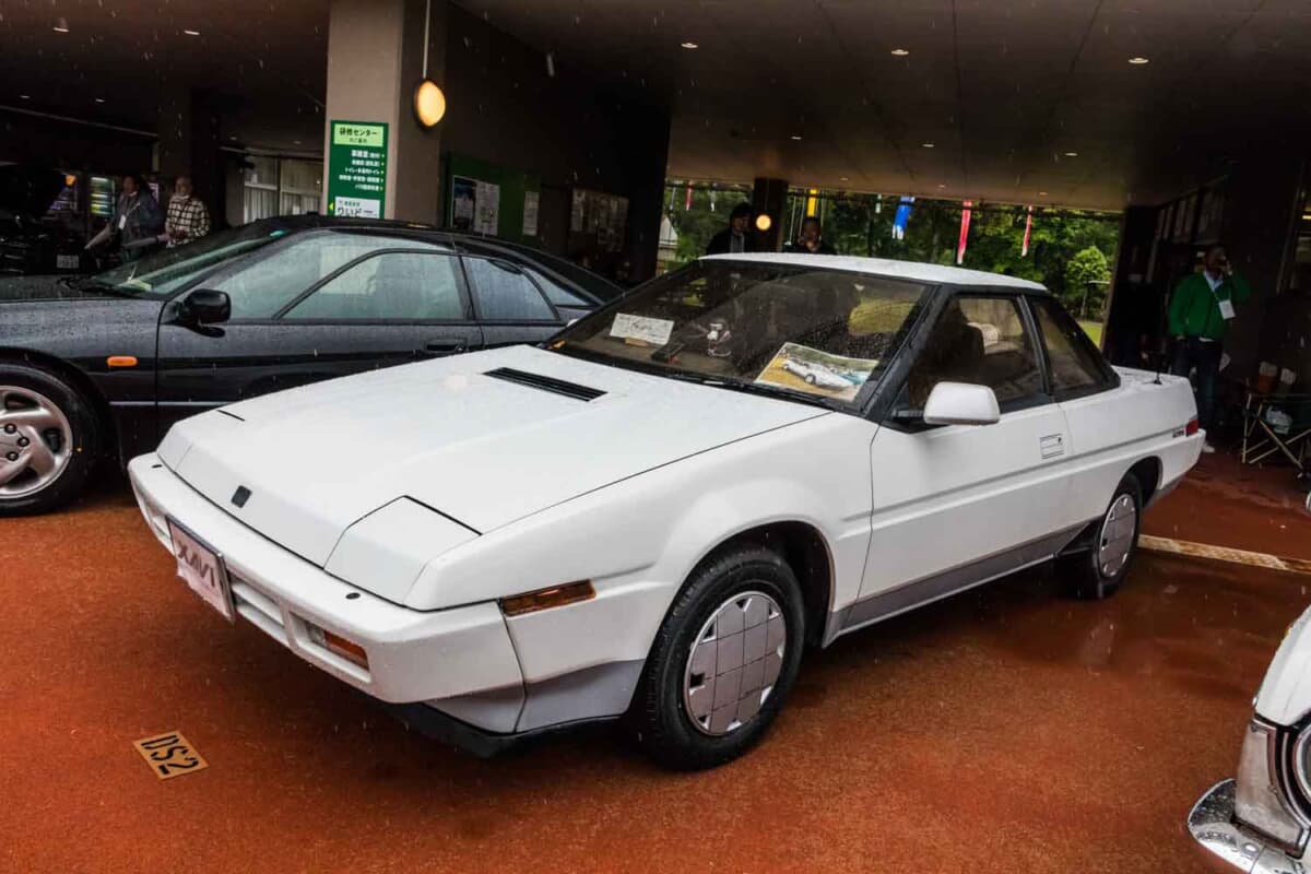 1985年に登場したアルシオーネは、定規を使ってデザインしたような極端なウェッジシェイプのボディを採用。スバル初となるリトラクタブルヘッドライトやフラットサーフェス化したドアノブなどので徹底的な空気抵抗の低減を行った結果、当時の日本車のベンチマークとなっていたCd値=0.3の壁を破る0.29を達成した。そのほかにも底面のフラットボトム化やリアアンダースポイラー、後端がリップ状に反り返っているハイデッキトランクなど、空力を意識した意匠は40年が経過した今でも決して色褪せていない。