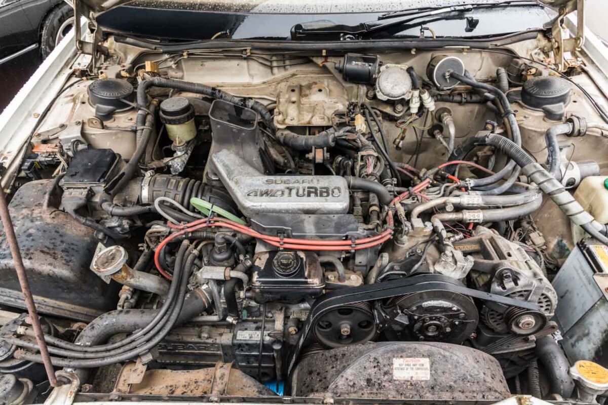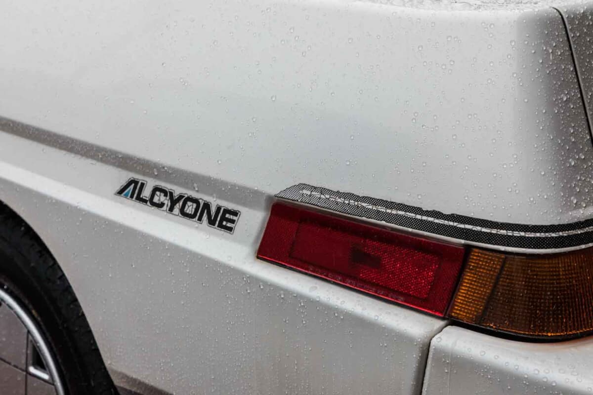 このボディに搭載したエンジンは、同時代のレオーネと同じ1.8L水平対向4気筒ターボ。4WDのVRターボとFFのVSターボをラインナップした。ちなみにアルシオーネとは、スバルのエンブレムである六連星(プレアデス星団)のなかでもっとも明るい星の名前である。
