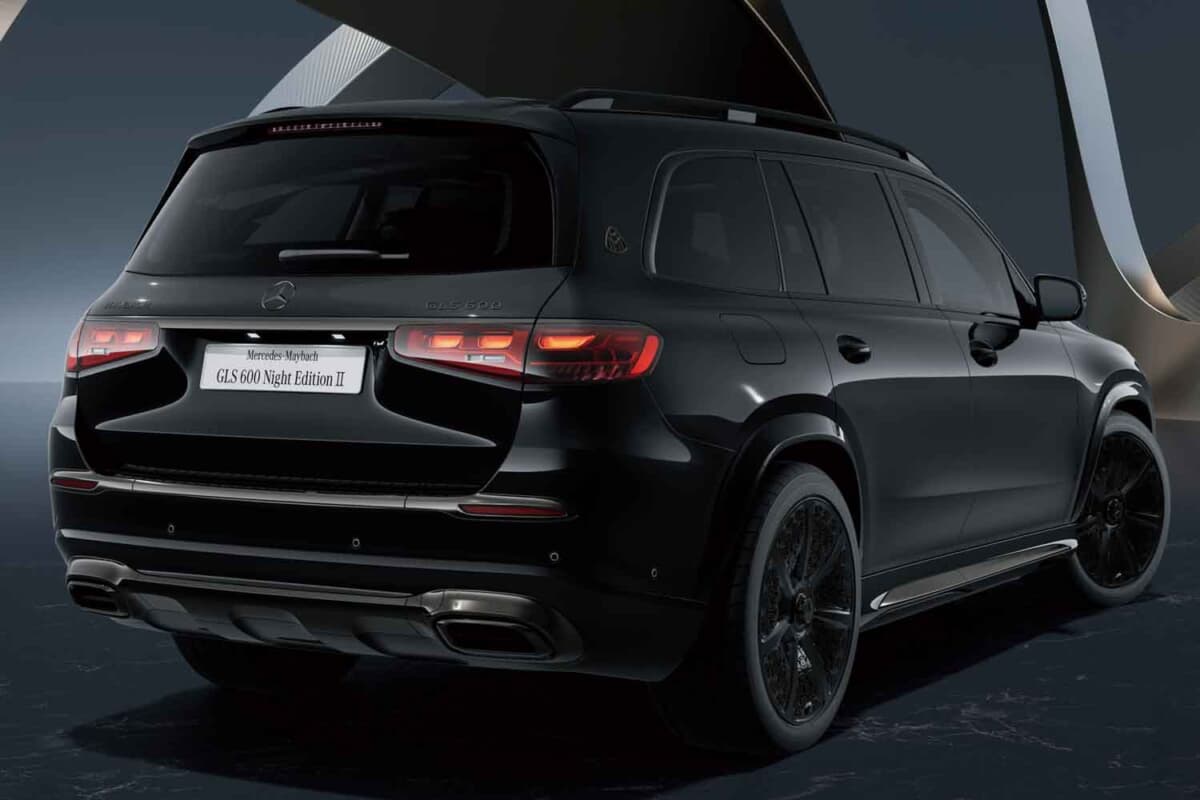サイドウィンドウトリムやランニングボードなどのブラックパーツ、マットブラックのルーフレール、マイバッハエンブレム入りのマルチビームLEDライト(ローズゴールドピンク)などの専用装備で、徹底したブラックテーマを貫いている。さらにナイトシリーズ専用イルミネーテッドステップカバーが夜間の乗降を華やかに演出する。