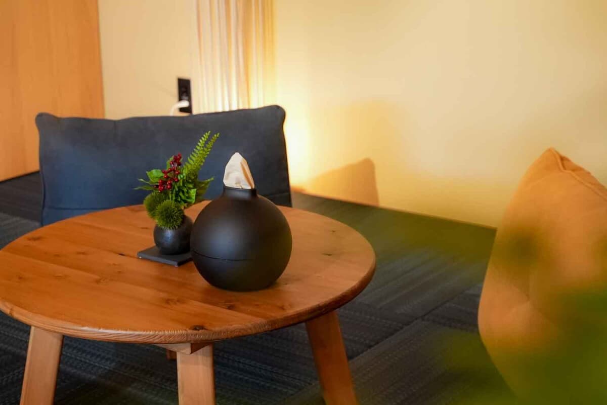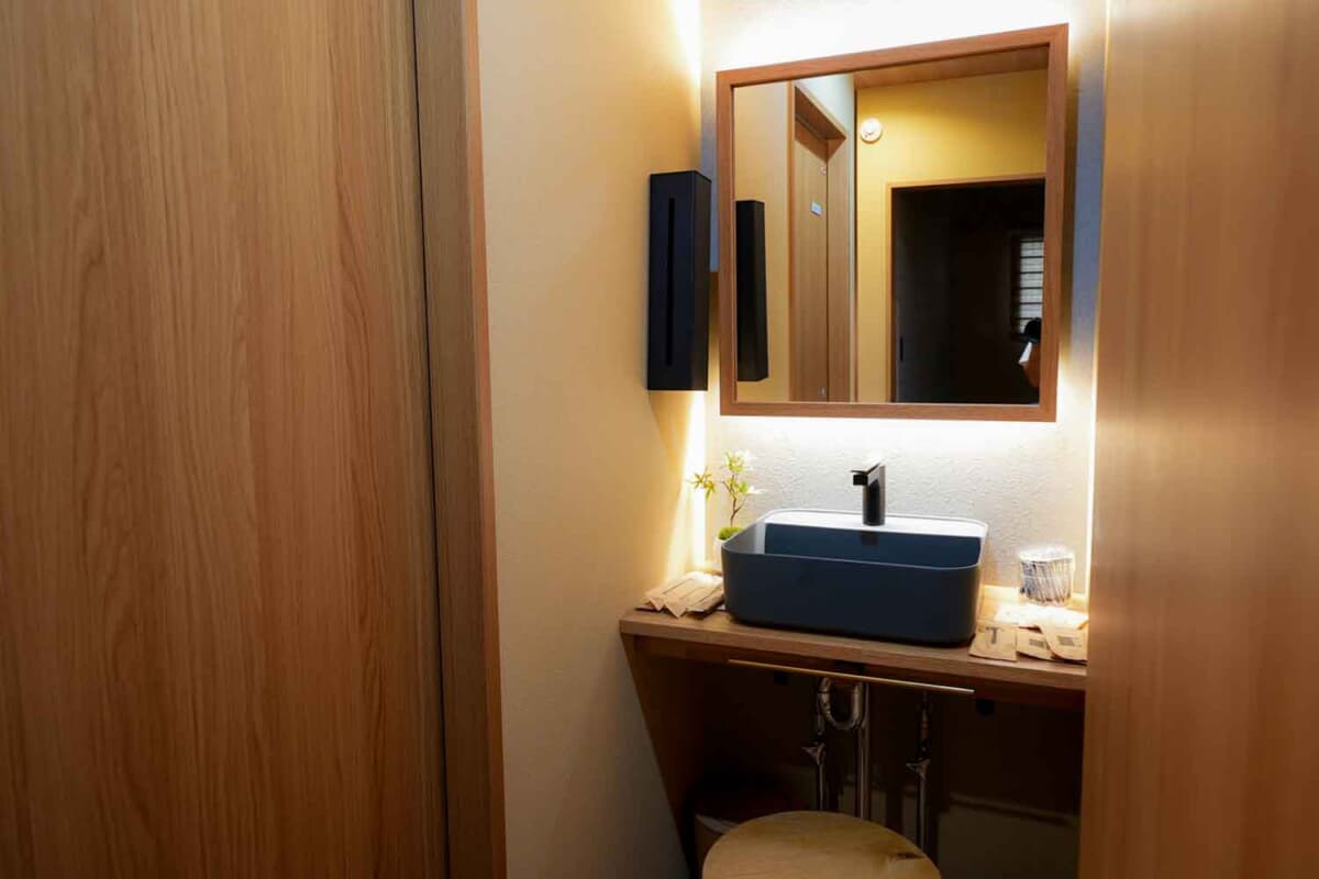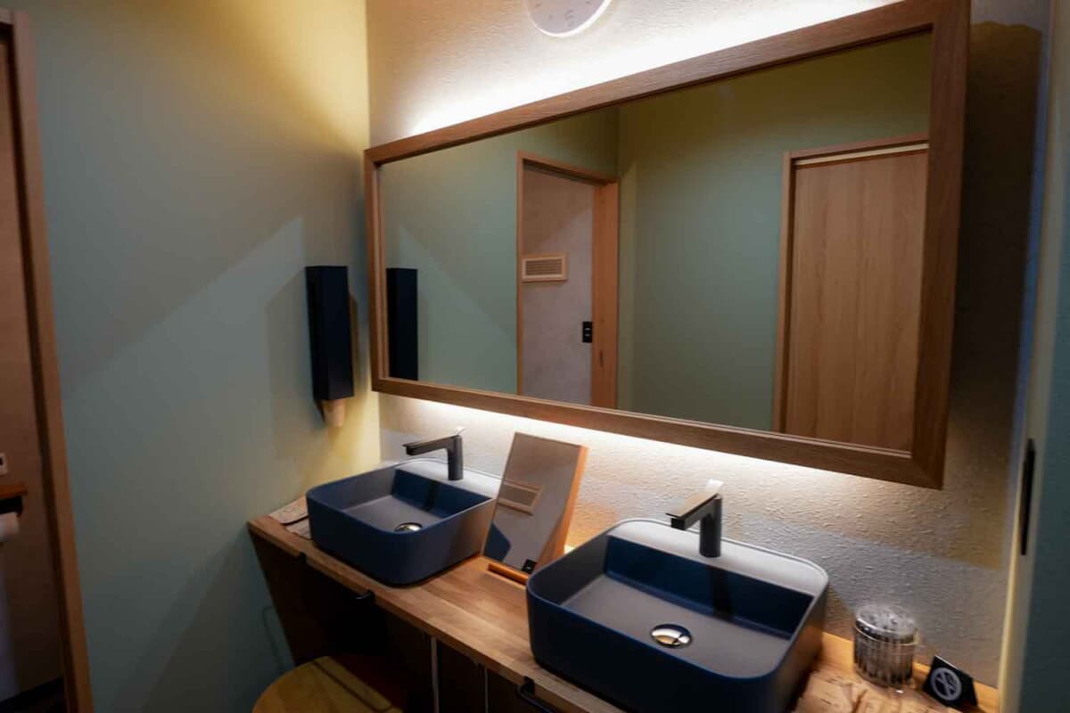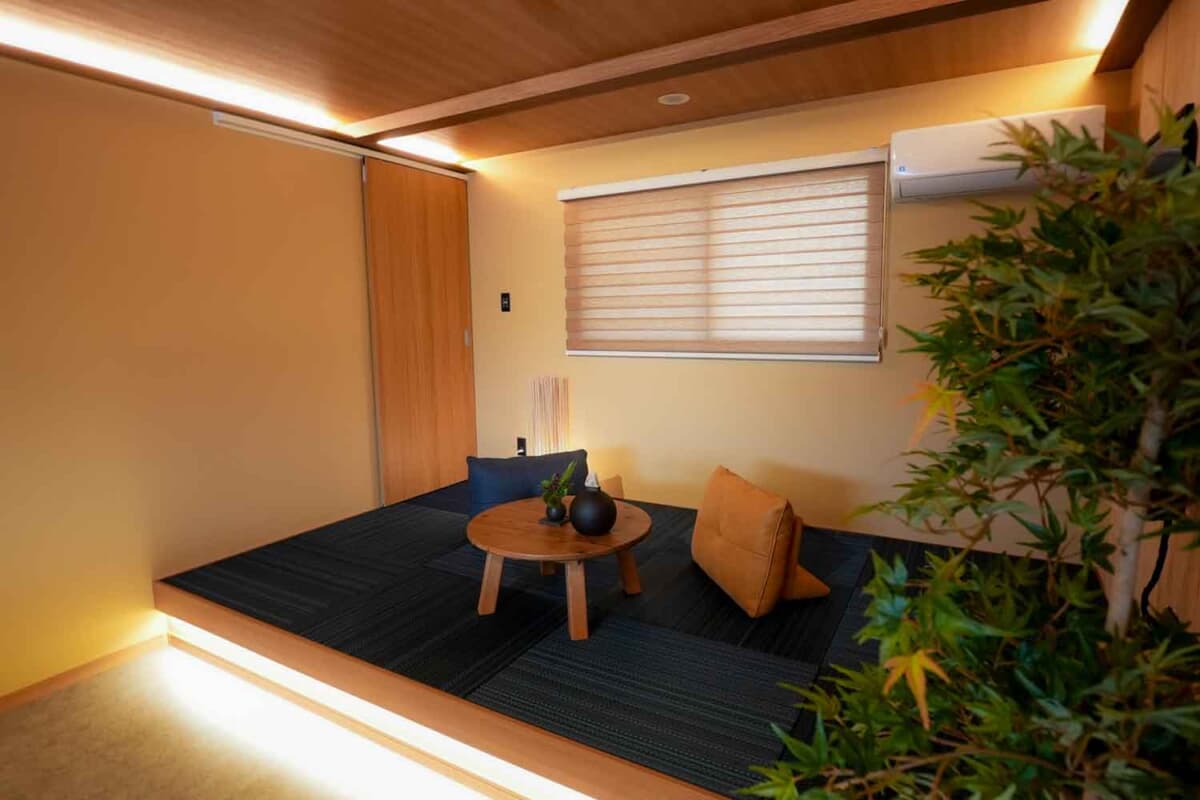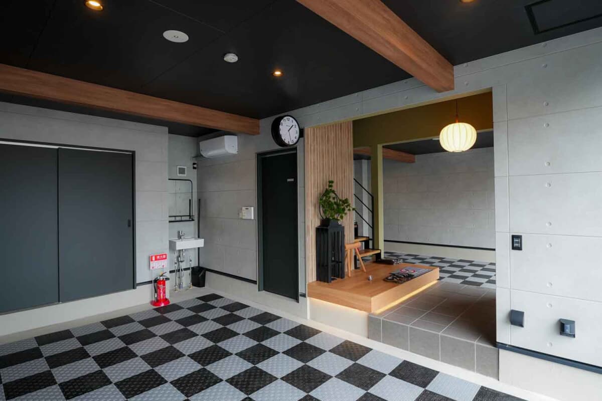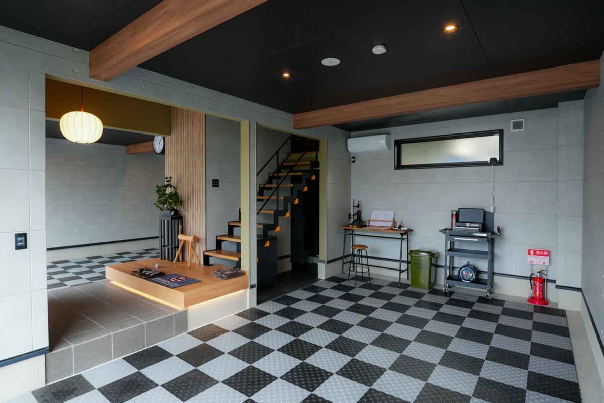 ちなみに、宮島のガレージホテルは同社にとって2号店となる。山陽自動車道路の五日市ICからほど近い1号店は、1階が大型SUVも余裕で納められるガレージ、2階が2名まで宿泊可能な宿泊スペースで、シンプルクリーンな作りが特徴だ。対する宮島は町屋をイメージした、よりプレミアムな和モダンをテーマに作り上げられた。
