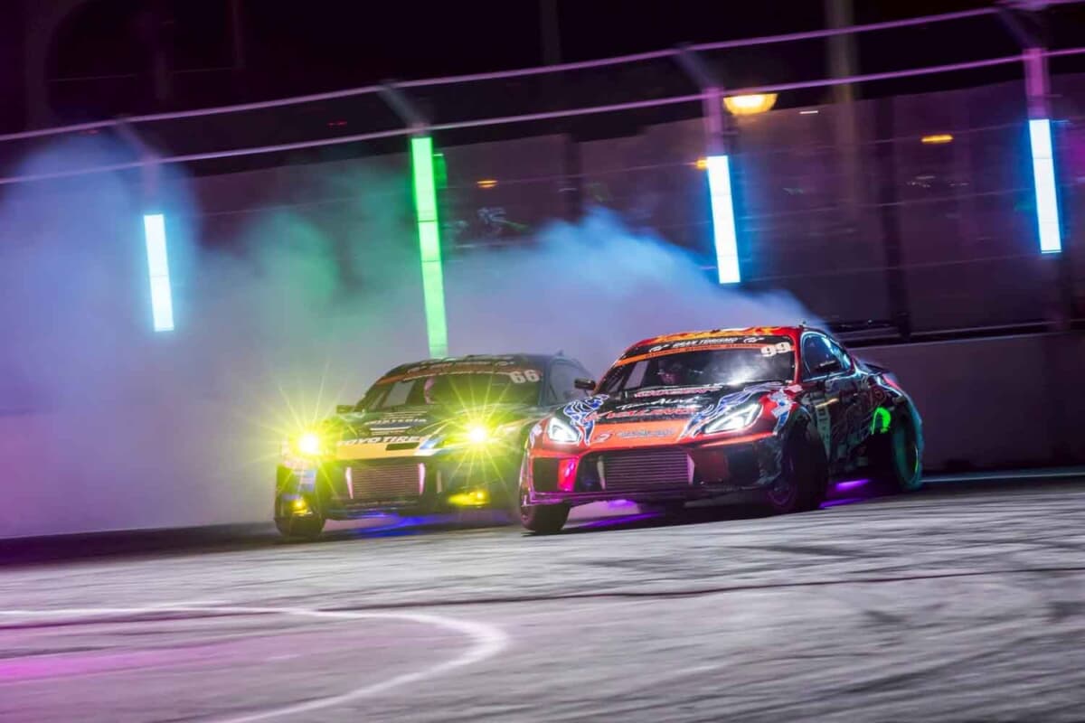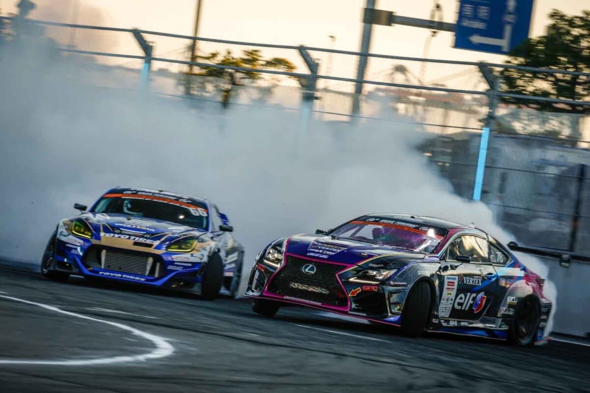D1の採点方法は複雑です。派手なドリフトをすれば勝てるという単純なものではなく、審査員による視覚評価に加え、DOSと呼ばれる電子審査システムが、速度・角度・姿勢の安定を数値化します。予選では単独の演技である単走、そして決勝トーナメントに進めば、2台での接近戦となる追走が行われます。相手にどれだけ寄れたのか、逆にどれだけ寄せなかったかも得点に加味され、技術と心理戦が交錯する濃密なステージとなります。