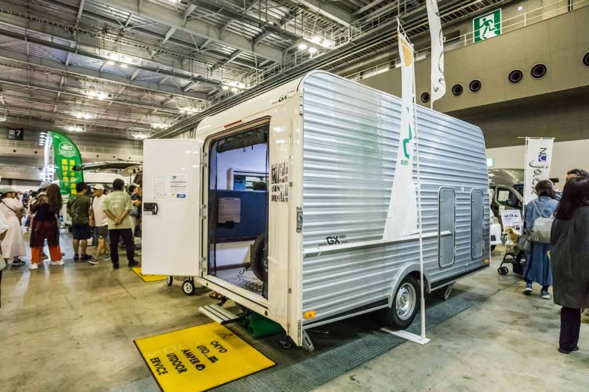 カスタムキャンピングカーを手掛けるタコス(TACOS)。とくに注目を集めているのが、軽量アルミトレーラー「GX350」です。牽引免許が不要で、普通車(SUV)でも気軽に引っ張れるところが特徴となっています。会場では、荷物もバイクも積める使い方の幅広さが人気を集めていました。