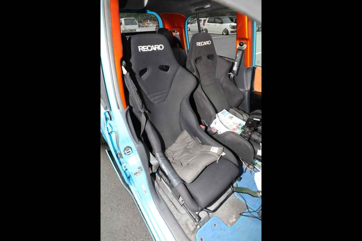 また、リアは左右にダクトを追加したスポーティな仕上がりで、センターにはトヨタ「86」用のバックフォグを埋め込んでいるのが特徴だ。テールランプの光らせ方も工夫した。光が左右対称に上下に移動しながら視認できるよう配線処理を施している。