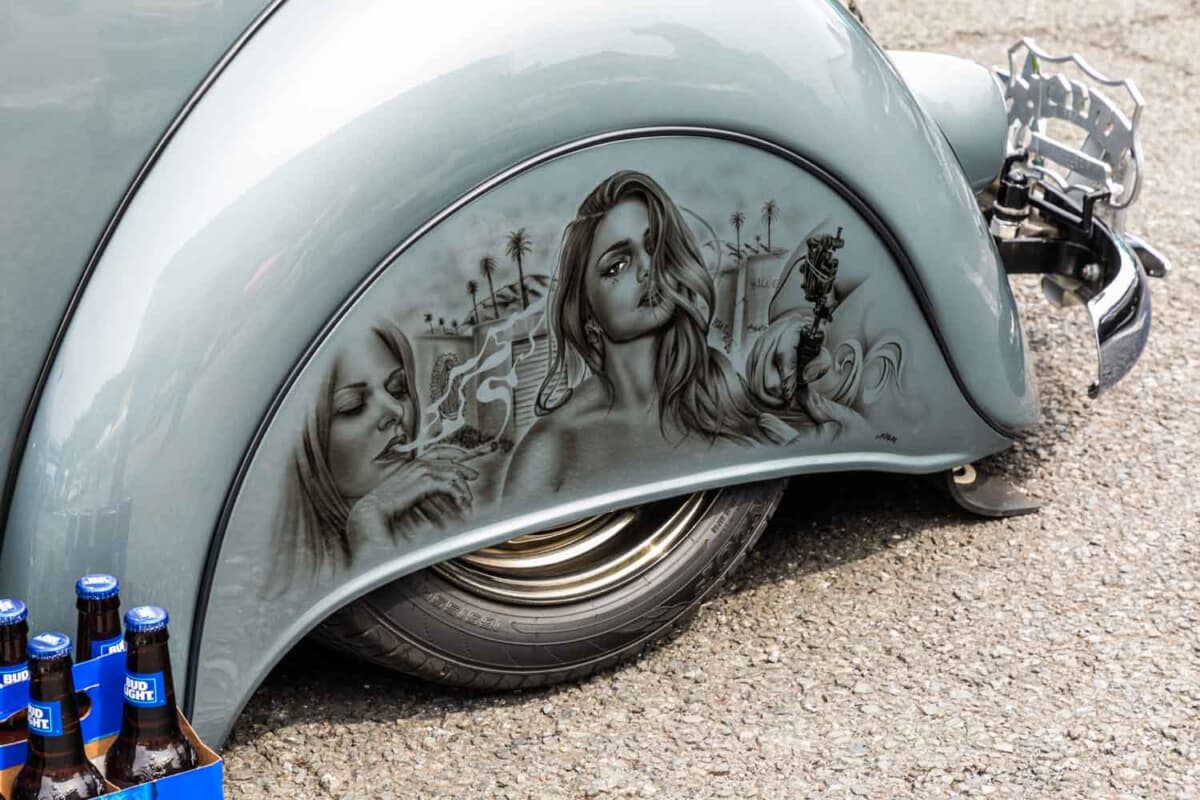 ストリートカーナショナルズの会場には、さまざまなクルマがエントリーしている。アメリカ車や日本車に次いで大勢力となっているのが、ドイツのフォルクスワーゲンで空冷エンジンを搭載する初代ビートルである。アメリカでカスタム文化が成熟したビートルは、ドイツ車ながらアメリカの香りがするクルマとして人気だ。
