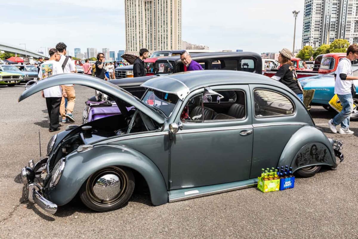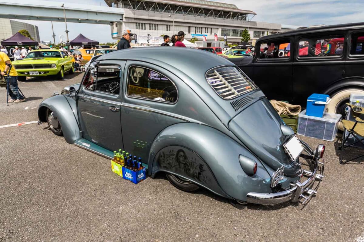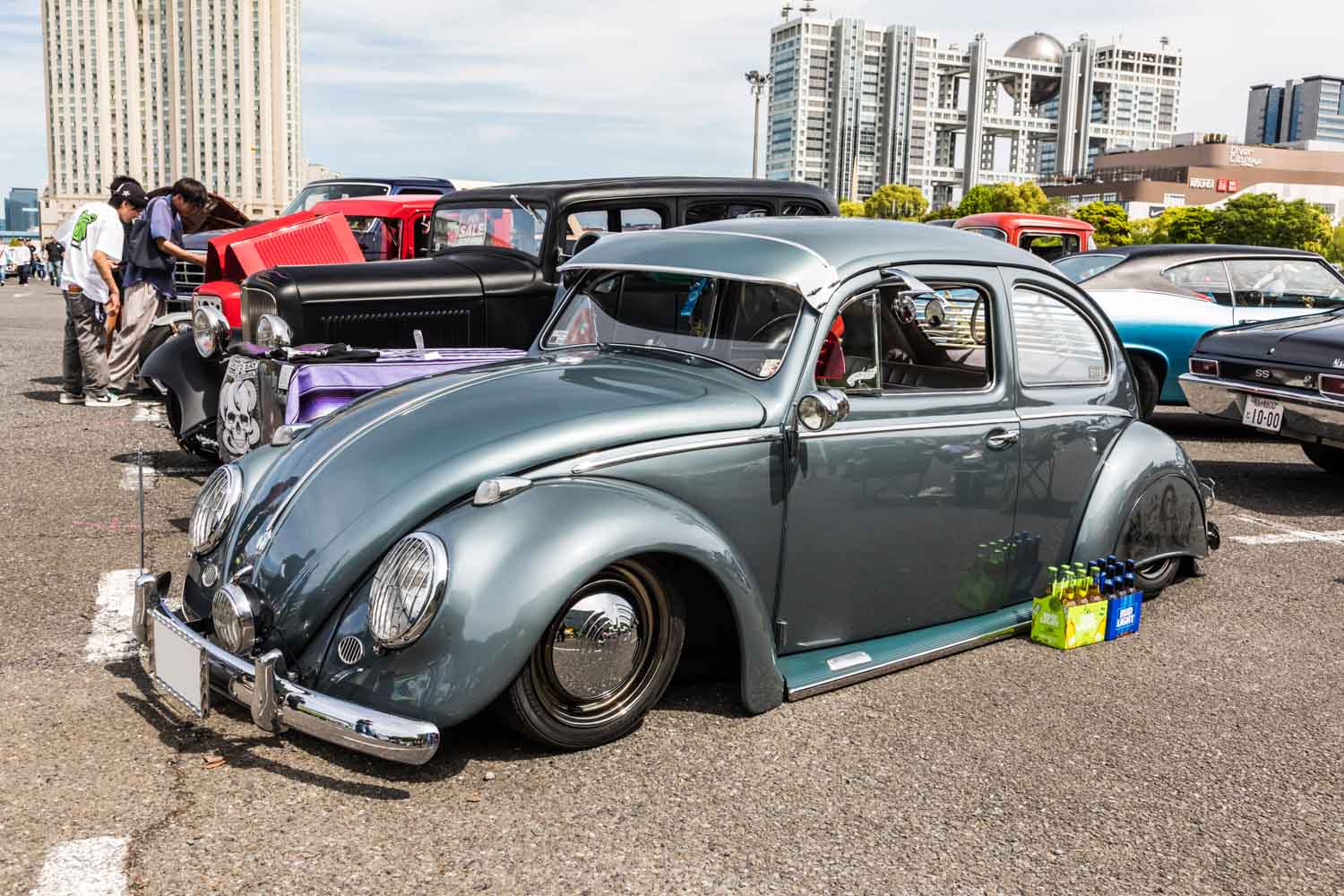 東京・お台場の駐車場で開催されたムーンアイズ主催のストリートカーナショナルズには、ひときわ異彩を放つ1台がありました。フォルクスワーゲンの初代「ビートル」をベースに、エアサスを使って現代のローライダーの世界観を投入した独自のカスタムスタイルです。このクルマを紹介します。