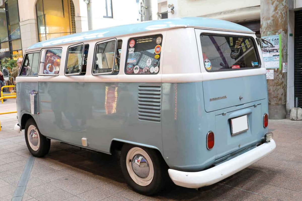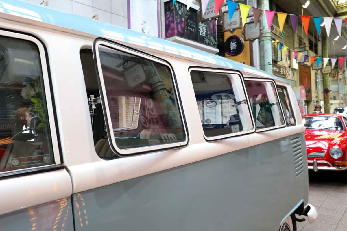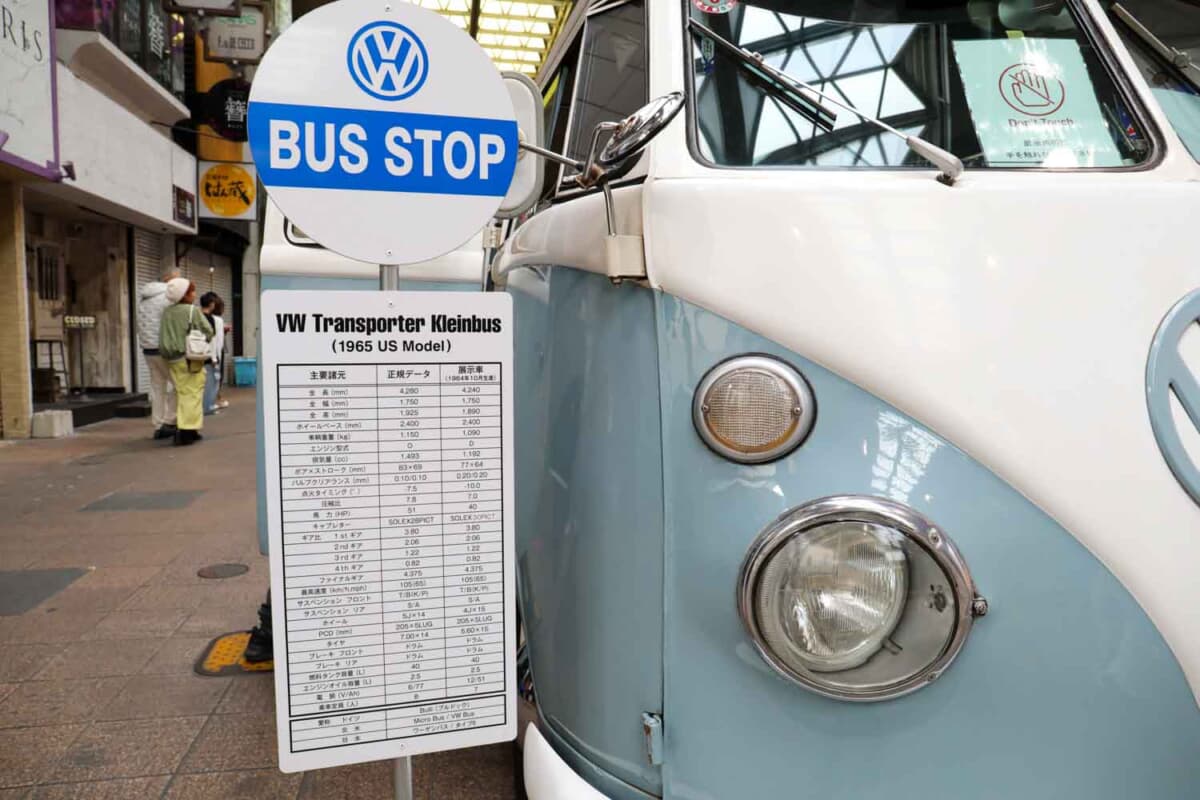 福岡県北九州市で開催されたクラシックカーストリート黒崎の会場で、VW「タイプ2」の隣に設置されたバス停の時刻表部分に書かれていたのは、このクルマのスペックだった。そんなユーモアあふれる展示をしていたのは久士目慎一さん。通称ワーゲンバスのおじさんだ。