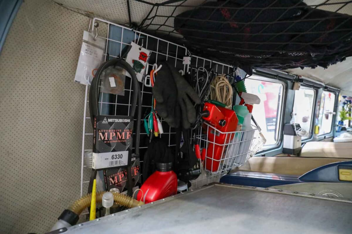 「クーラーは購入当初から後付けタイプが装着されていた。私が入手してからは、間欠ワイパーに変更し、各鍵をリモコンロック式にしている。できることは自分でやりながら、日常でも便利に使えるようにと、いろいろカスタムを施している」