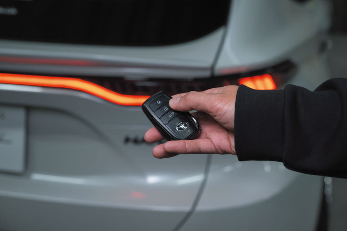 欧州車などにも採用されているオープニング&エ ンディングアクション機能を新搭載。ロックまたは アンロックに連動して、テールランプがモーション 点灯してくれる(写真①→⑧)