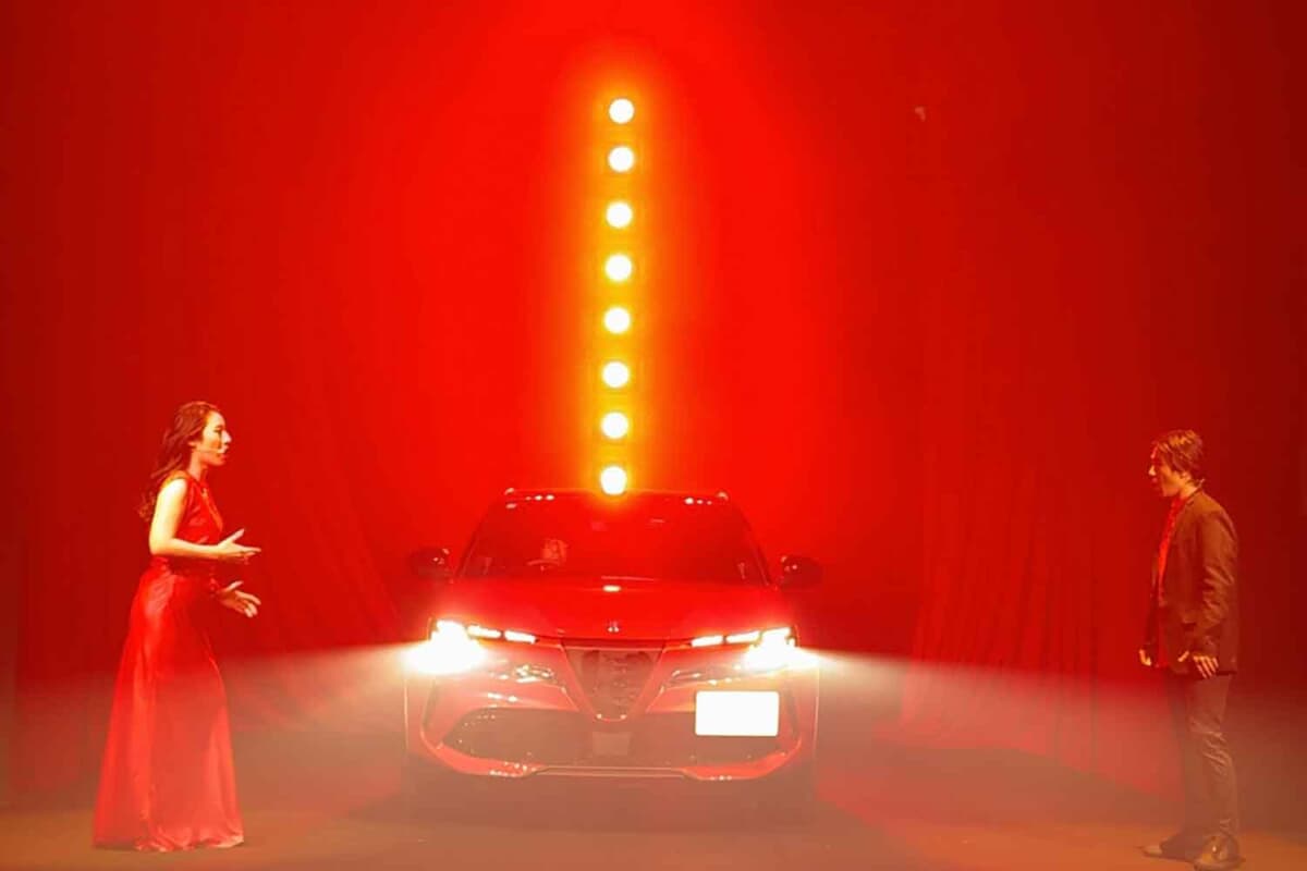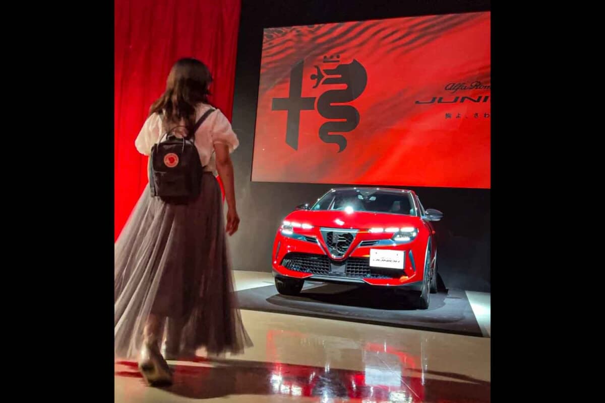 「ワクワク演出編」として印象的だったのが、アルファ ロメオ初のEV「ジュニア」の発表会ですわ。イタリアらしく、オペラと“赤”の世界観で始まる演出は、まさにドラマティック。プッチーニの名作「トゥーランドットより『誰も寝てはならぬ』の生演奏とオペラ歌手によるパフォーマンスで幕を開けるという、贅沢な時間でしたわ。