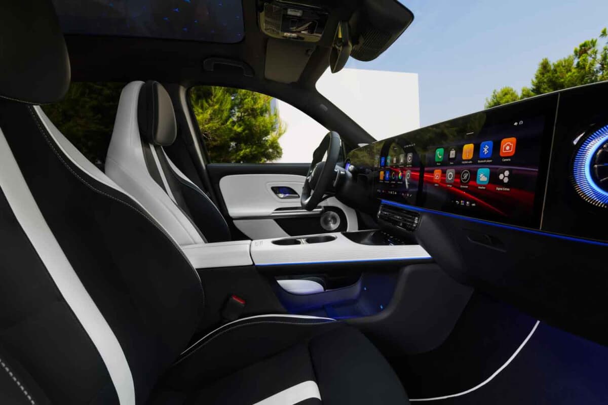 また室内インターフェイスの革新としてMBUXスーパースクリーンが設定され、10.25インチの運転席用と14インチの中央および助手席用ディスプレイが一体化して見えるパネル下に配置される。AIを統合した対話型操作で、ChatGPT4oやGoogleの知識基盤により複雑な対話や目的地検索に対応する。Googleマップを活用したナビゲーションは周辺認識とリアルタイム処理が向上し、MBUX サラウンド・ナビゲーションにより車両の認識情報を視覚化する。車両価格はGLB 250+(59,048ユーロ~約1060万円)とGLB 350 4MATIC(62,178ユーロ~約1120万円)となる。
